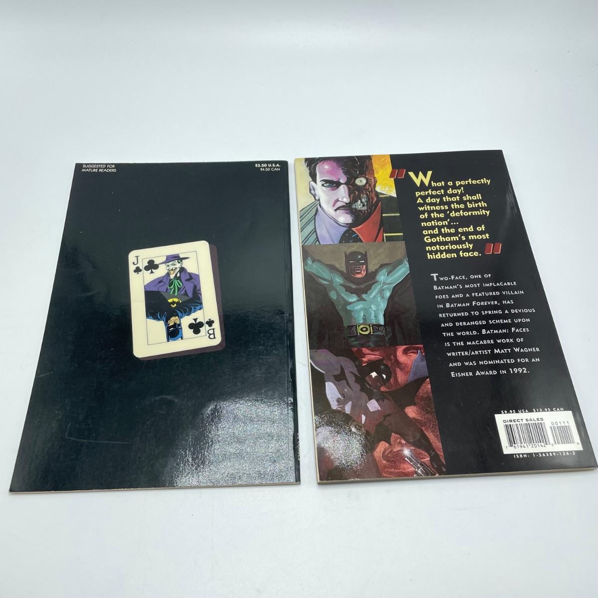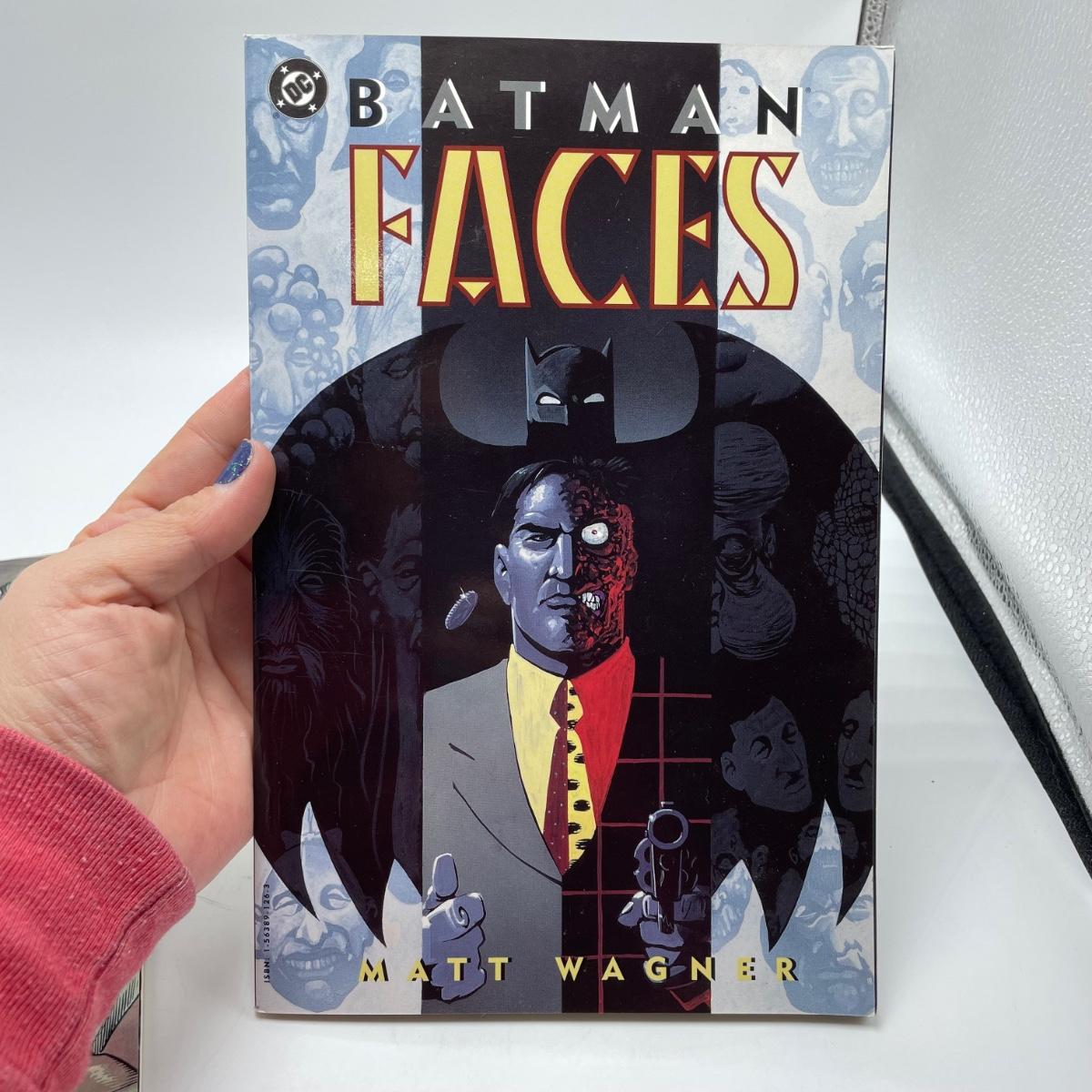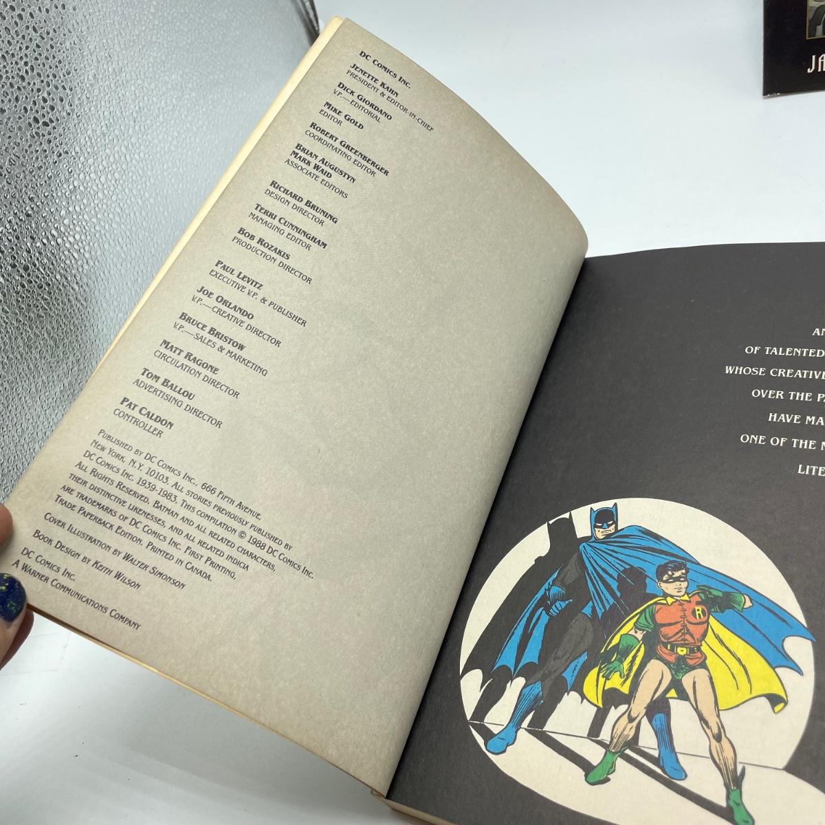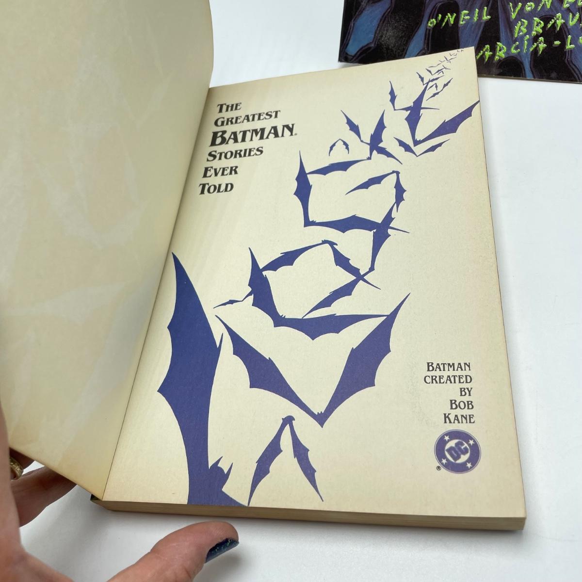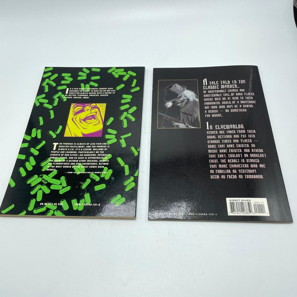 Nine Batman paperback novels from DC Comics by various artists. Lot includes The Greatest Batman Stories Ever Told Vol 2, Batman: Venom, Batman: Castle of the Bat, Batman: The Killing Joke, Batman: Faces, Batman: The Last Angel, Batman: The Brotherhood of the Bat, Legends of the World’s Finest and Batman: In Darkest Knight. See images for printing dates and artists. Items are sold as-is. No returns or refunds. Please bid accordingly.