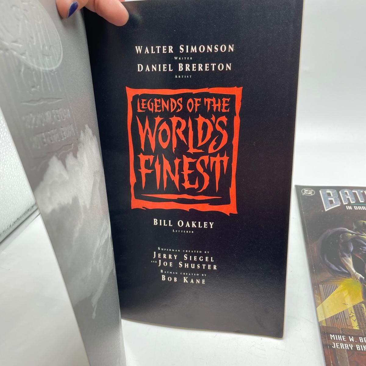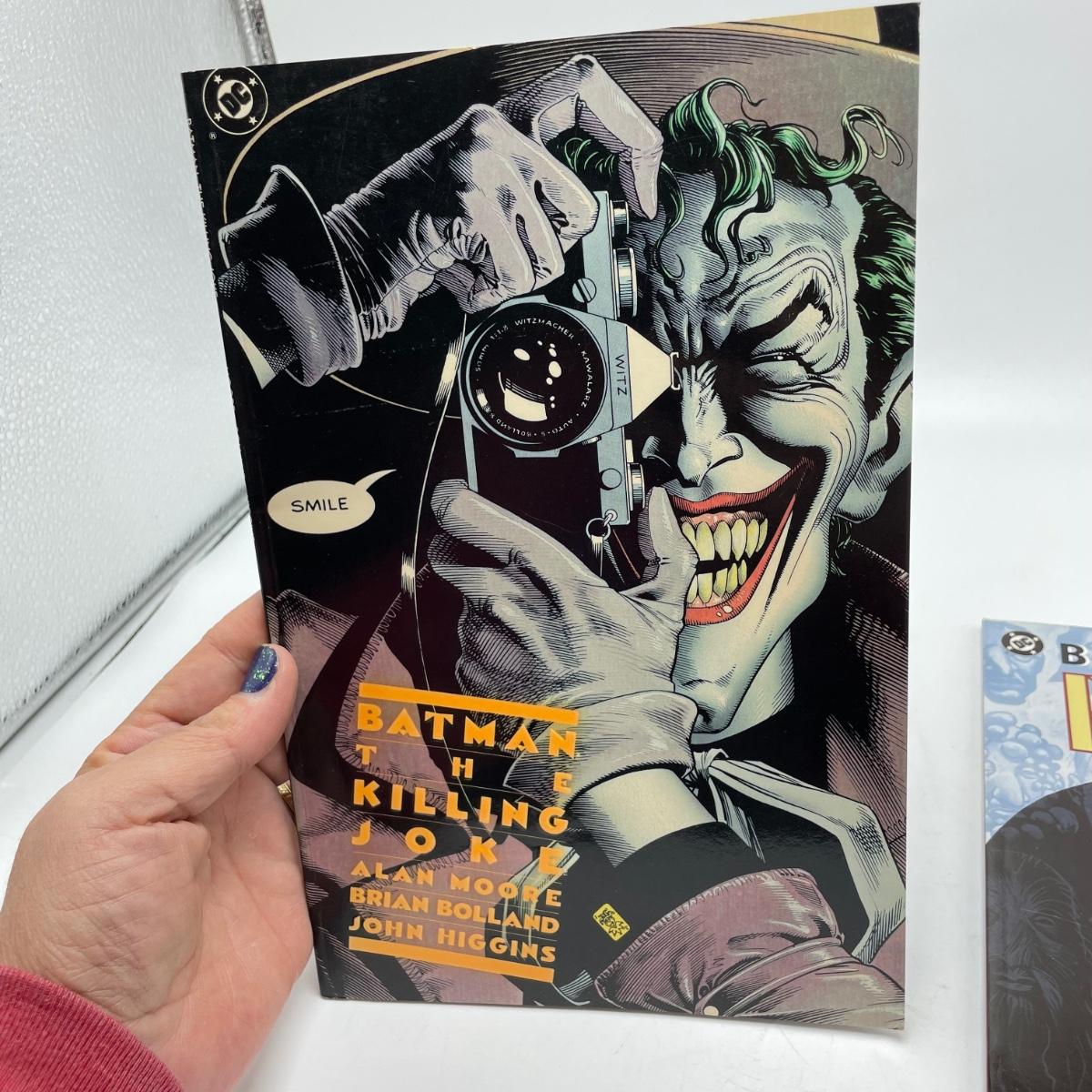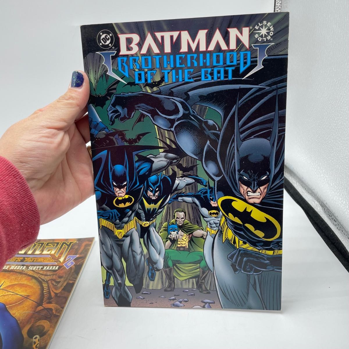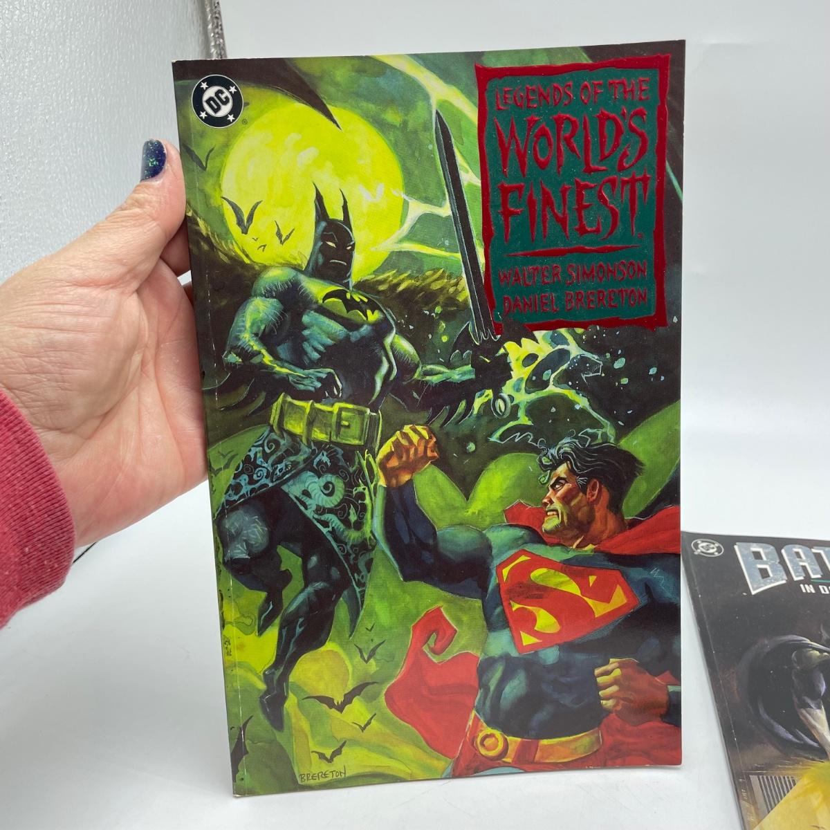 Nine Batman paperback novels from DC Comics by various artists. Lot includes The Greatest Batman Stories Ever Told Vol 2, Batman: Venom, Batman: Castle of the Bat, Batman: The Killing Joke, Batman: Faces, Batman: The Last Angel, Batman: The Brotherhood of the Bat, Legends of the World’s Finest and Batman: In Darkest Knight. See images for printing dates and artists. Items are sold as-is. No returns or refunds. Please bid accordingly.