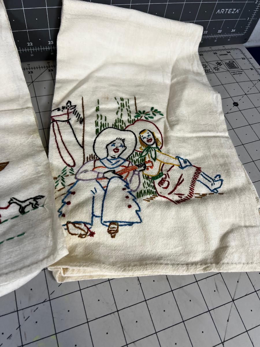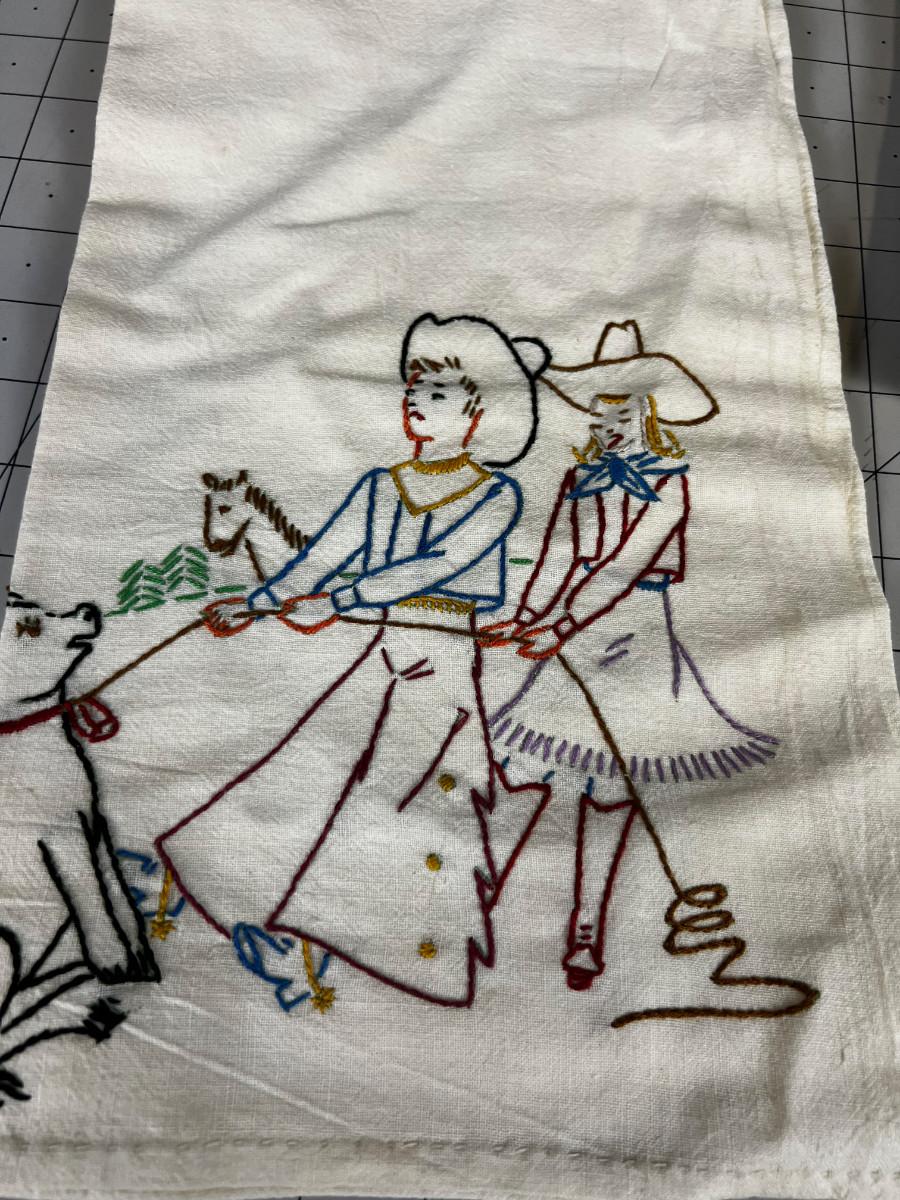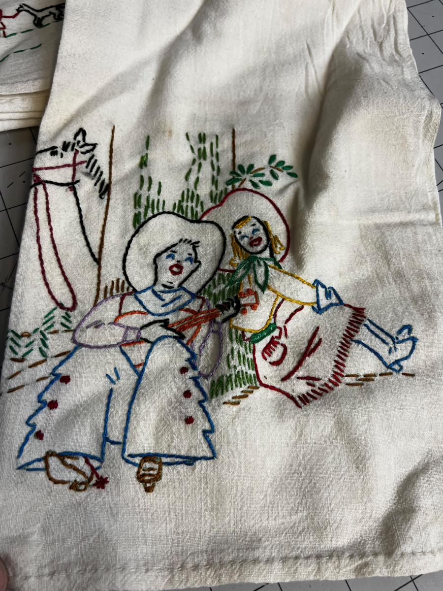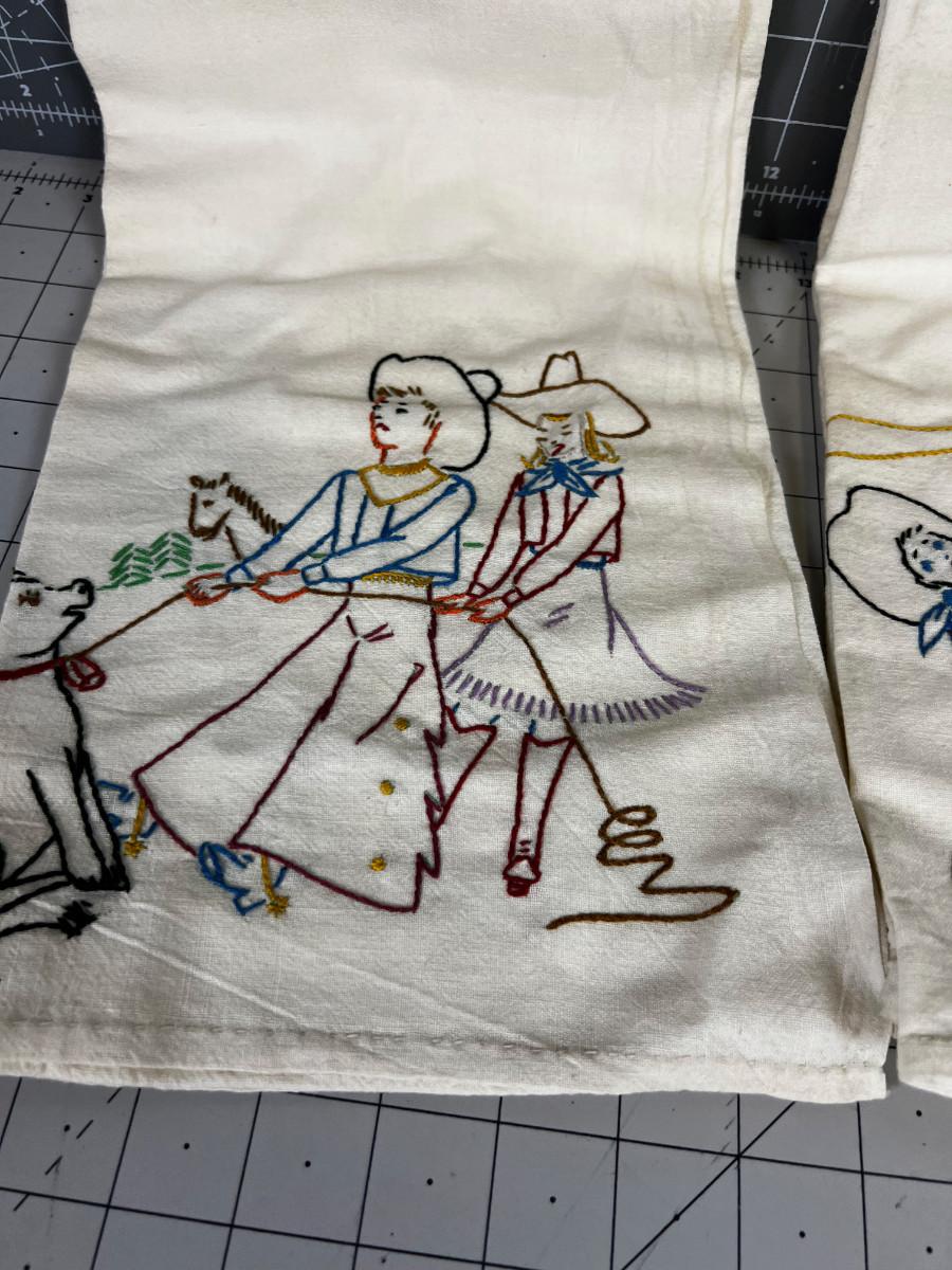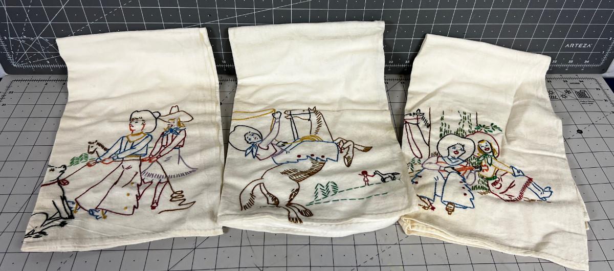 The Greatest Embroidered Western Flour Sack (3) Kitchen Towels EVER!