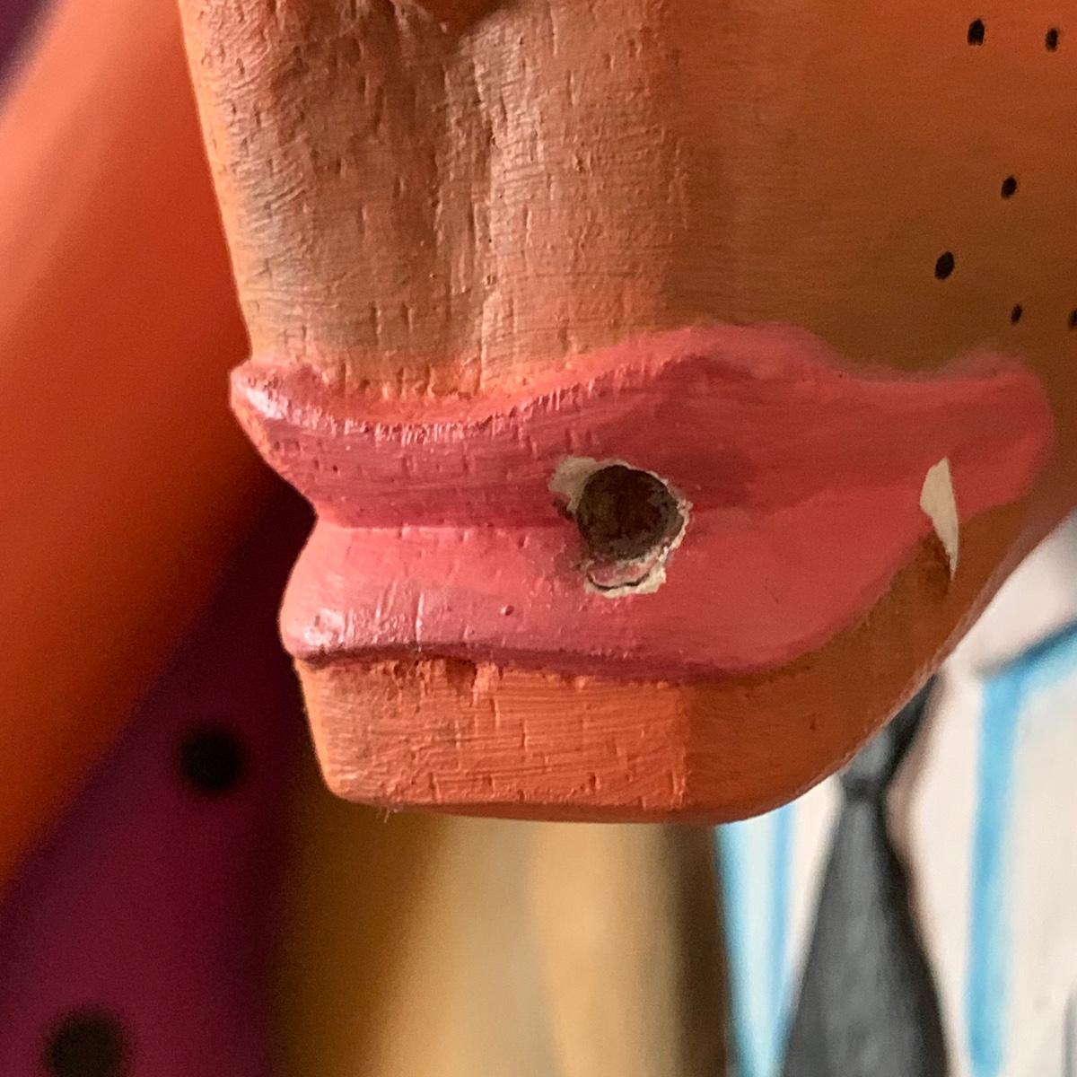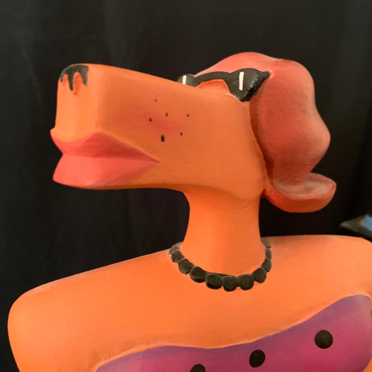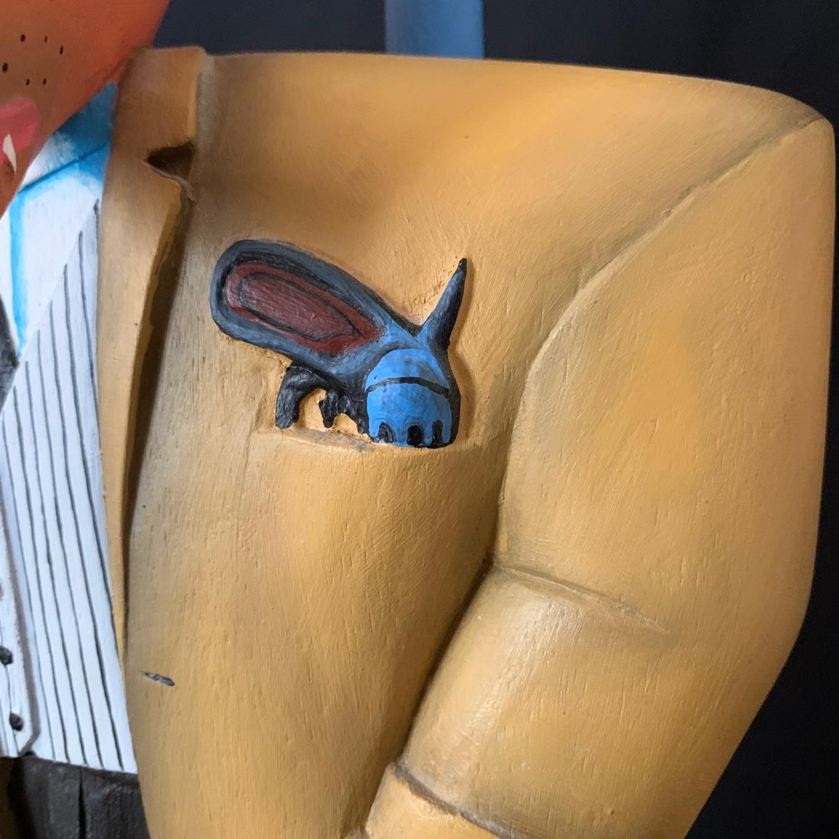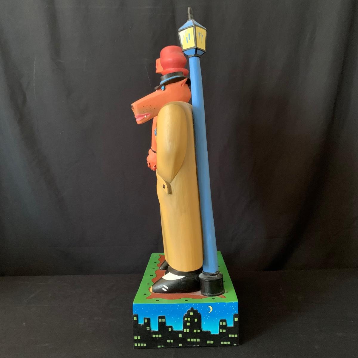 Sculpture titled “The Gumshoe and The Dame” by Markus Pierson. Sculpture comes with a Certificate of Authenticity stating that it is an original sculpture created, signed, and numbered by the artist. It appears to be made of resin and wood. It is hand-painted and it measures 12.5” x 6.75” x 22.25”. There is a hole is the “gumshoe’s” mouth where it looks like a cigarette is missing; see photos.