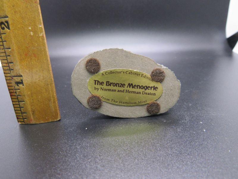 2.5" miniature owl figurine from The Hamilton Mint. Part of the Bronze Menagerie by Norman & Herman Deaton. Sticker on the bottom. Good condition.
