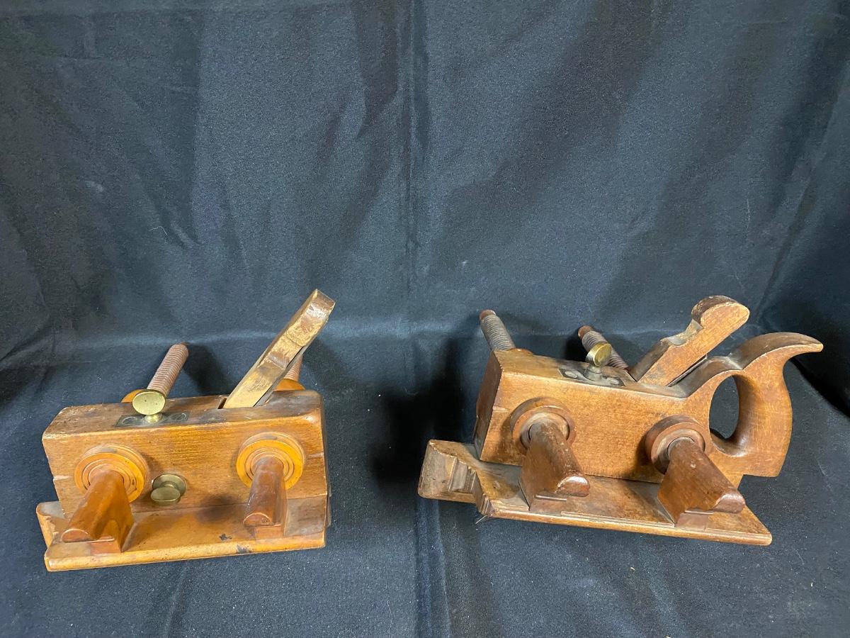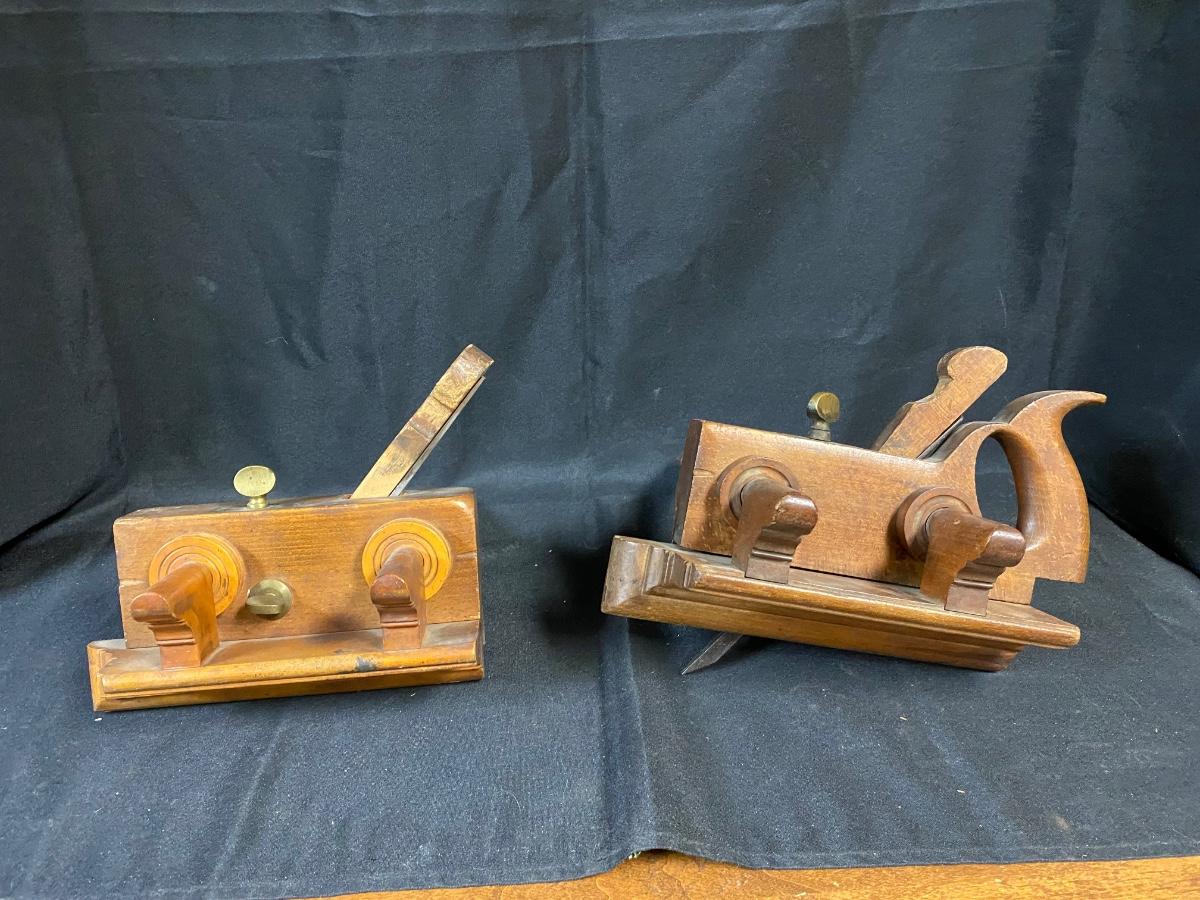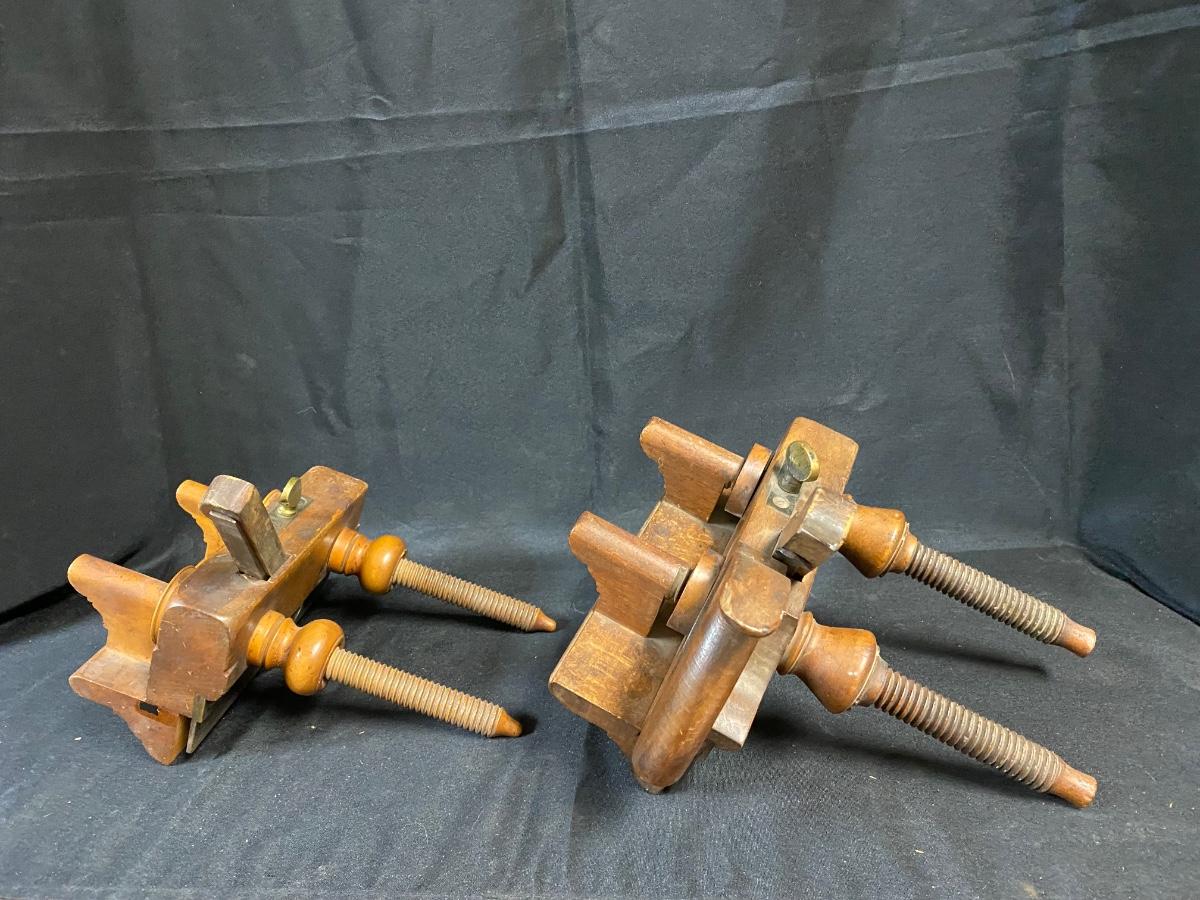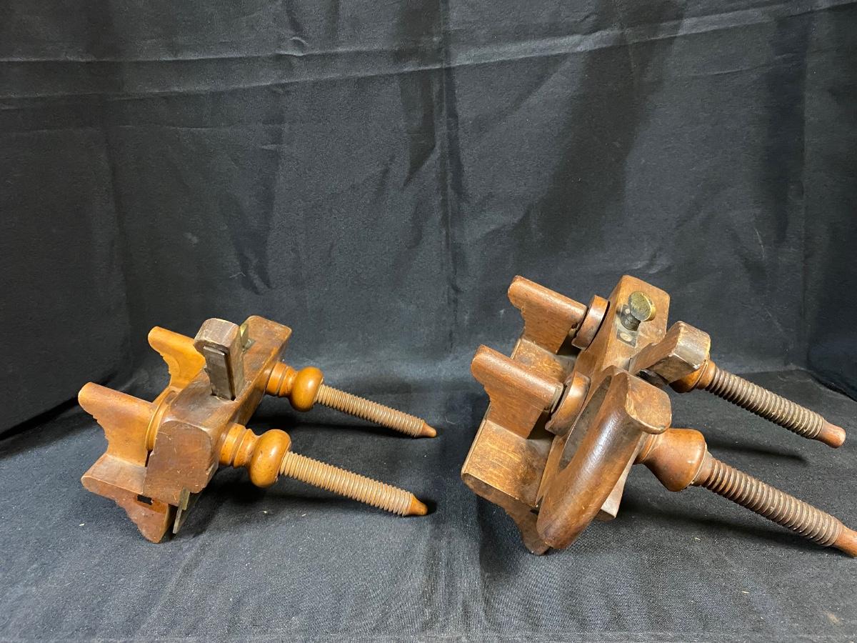 Pair of Antique Wood Plow Plough Planes Adjustable Screw Arm