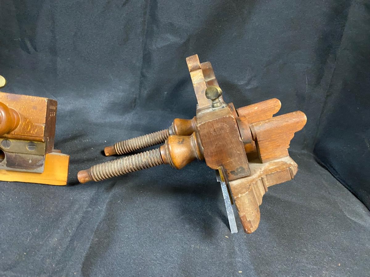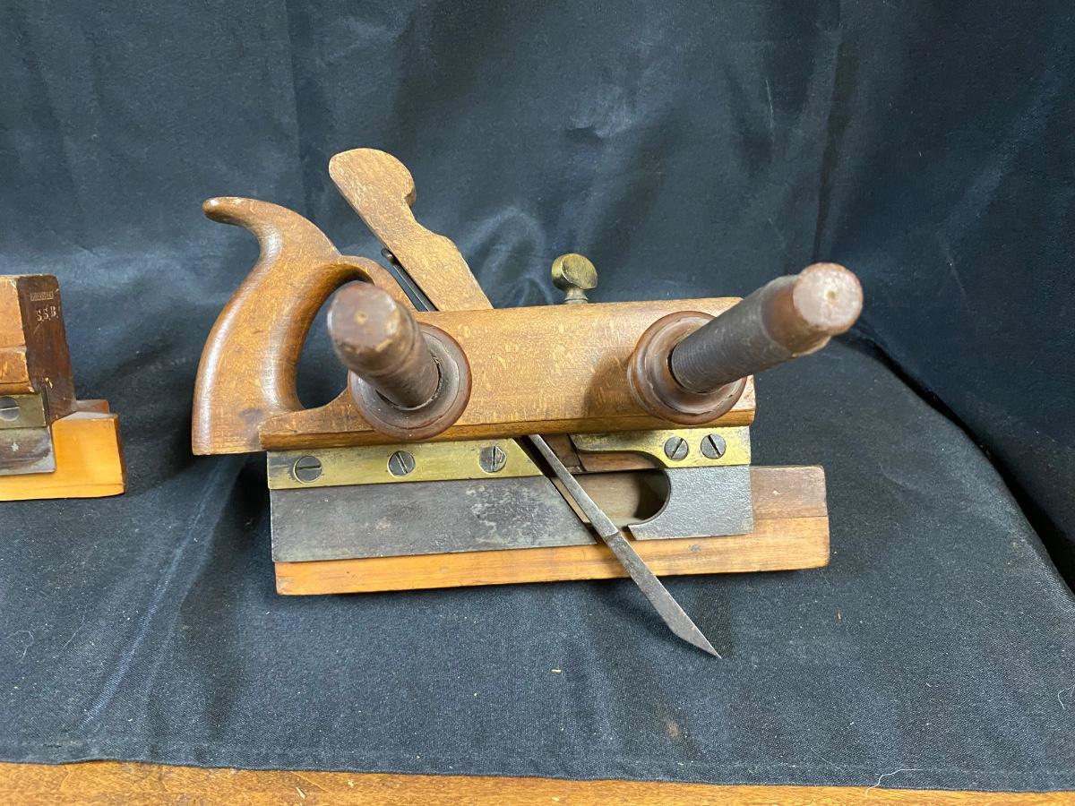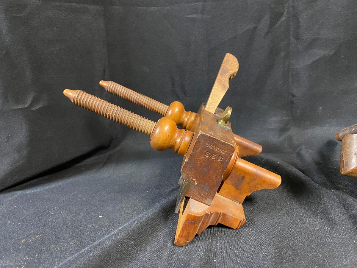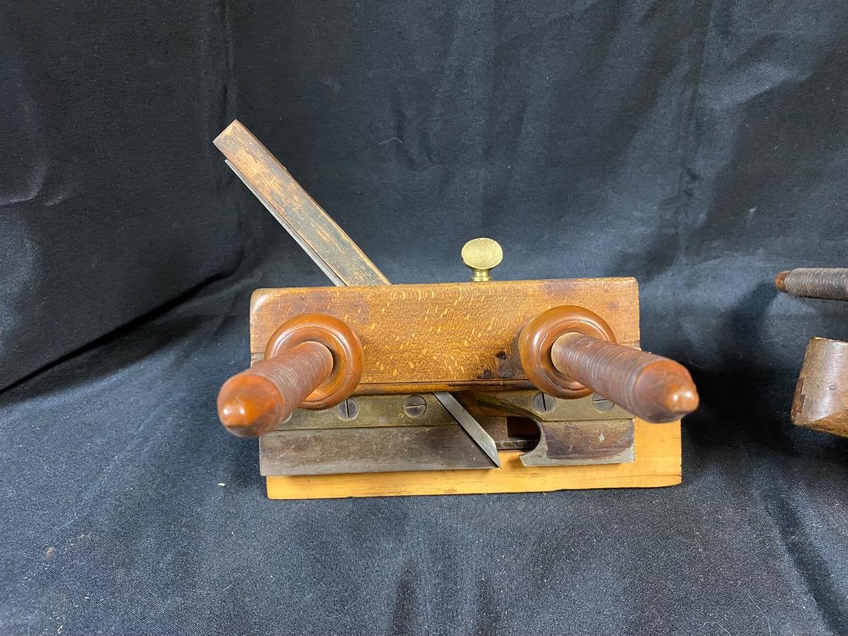 Pair of Antique Wood Plow Plough Planes Adjustable Screw Arm