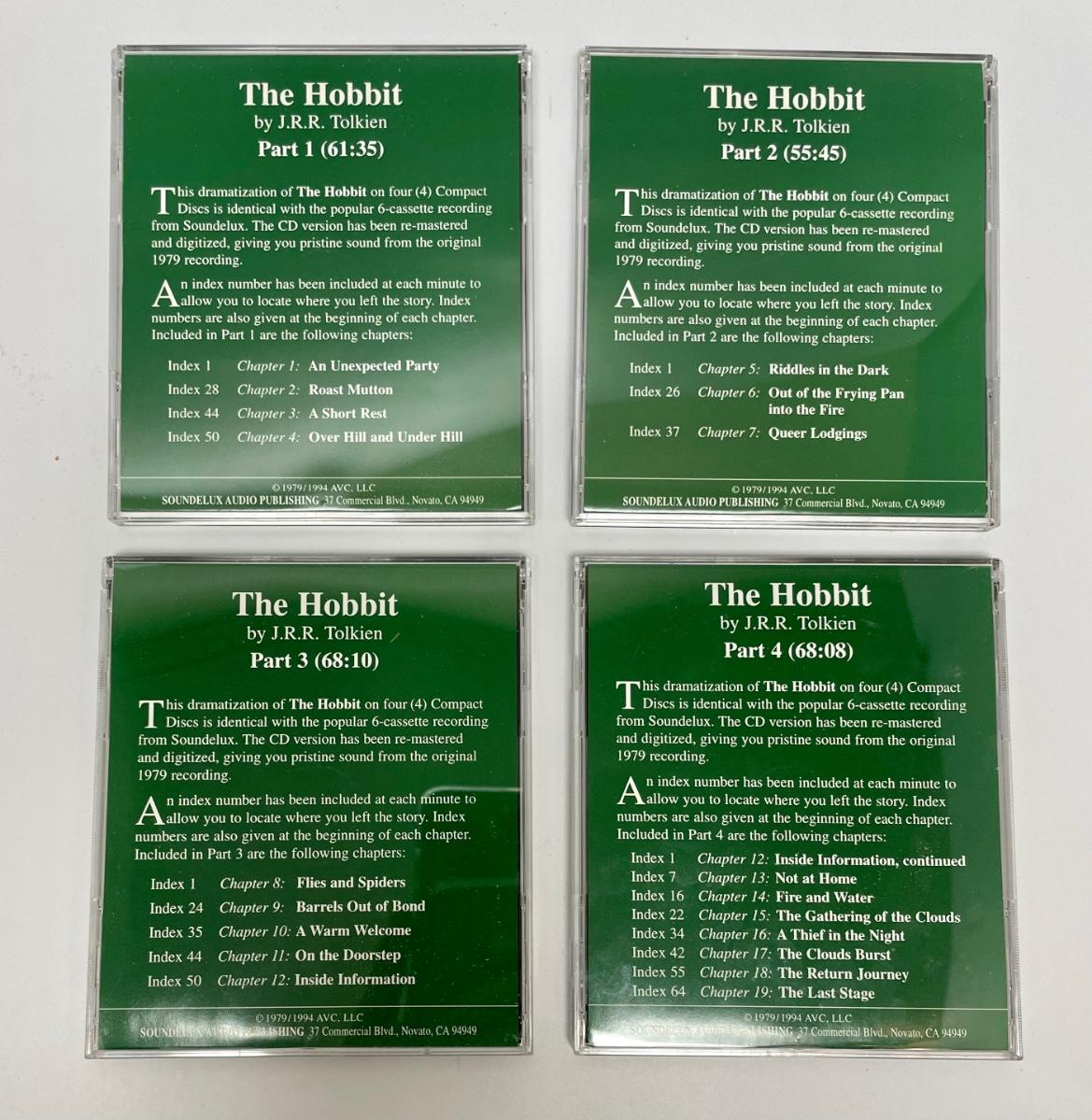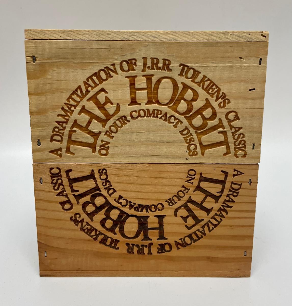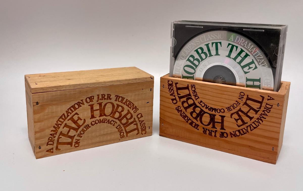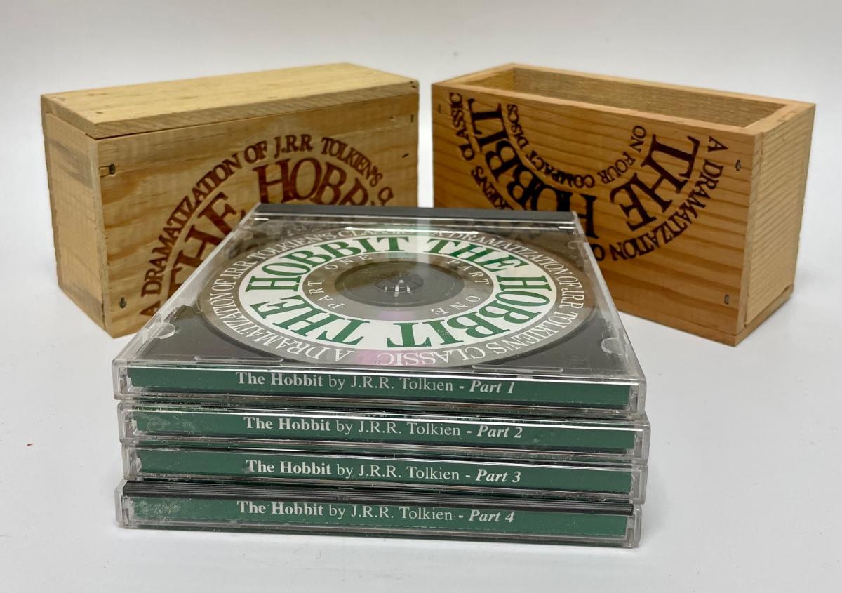 Set of 4 CDs telling The Hobbit. Comes in a wooden box with a circular burned in label. Produced in 1994.