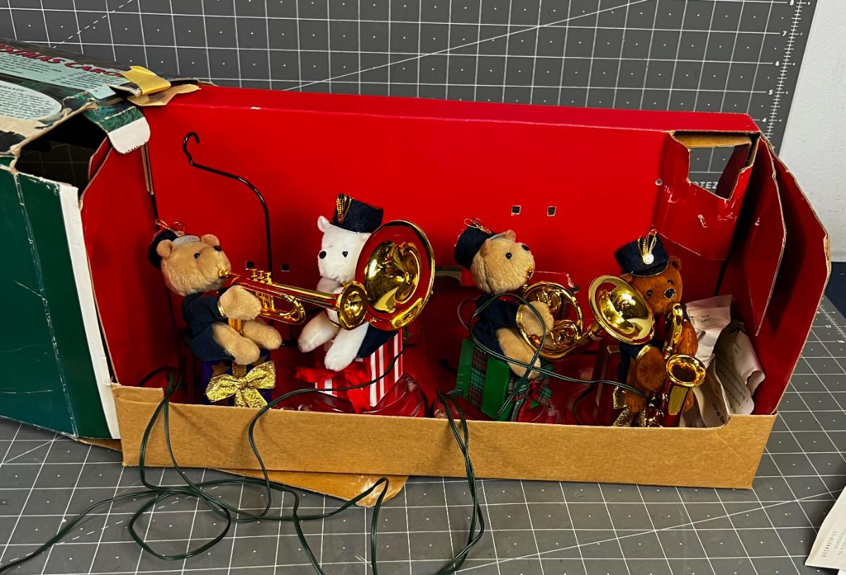The Impressive X-mas Bear Band that plays music.