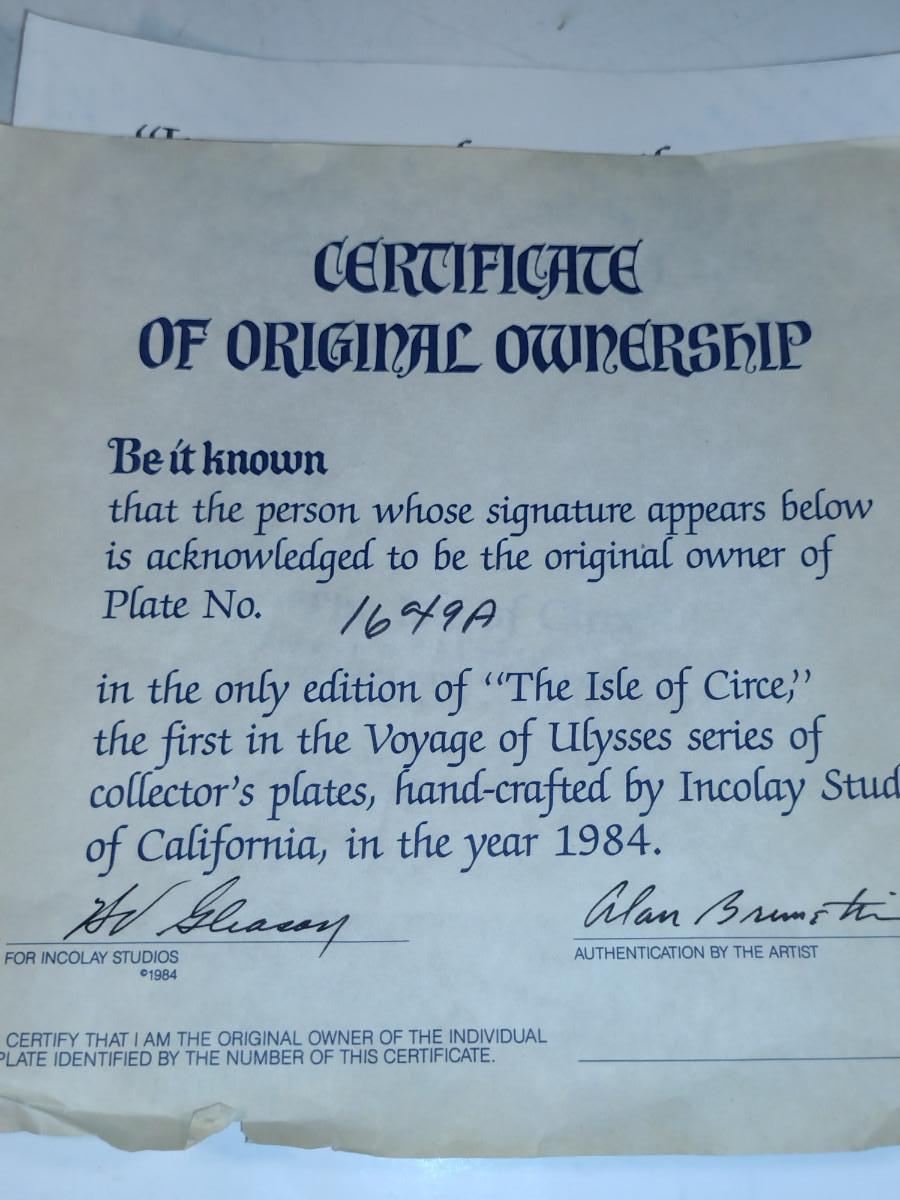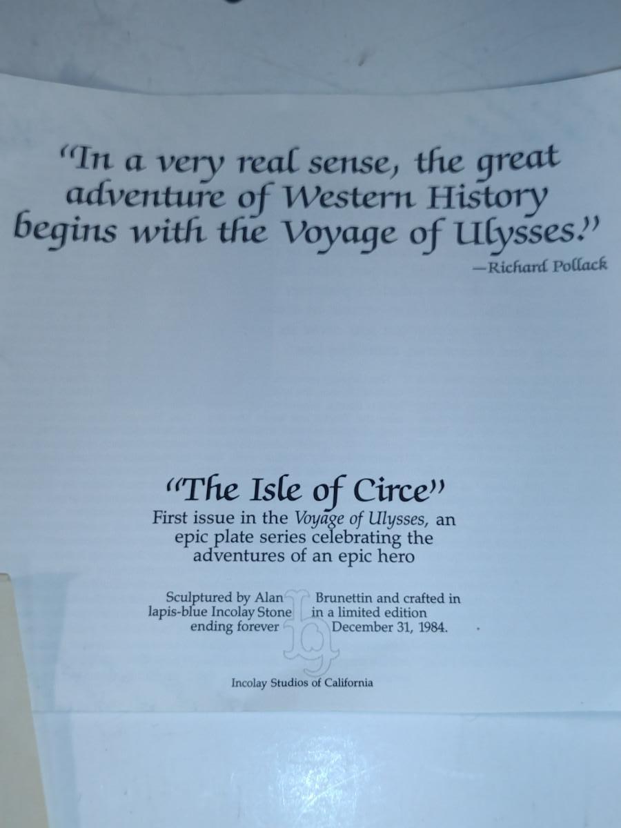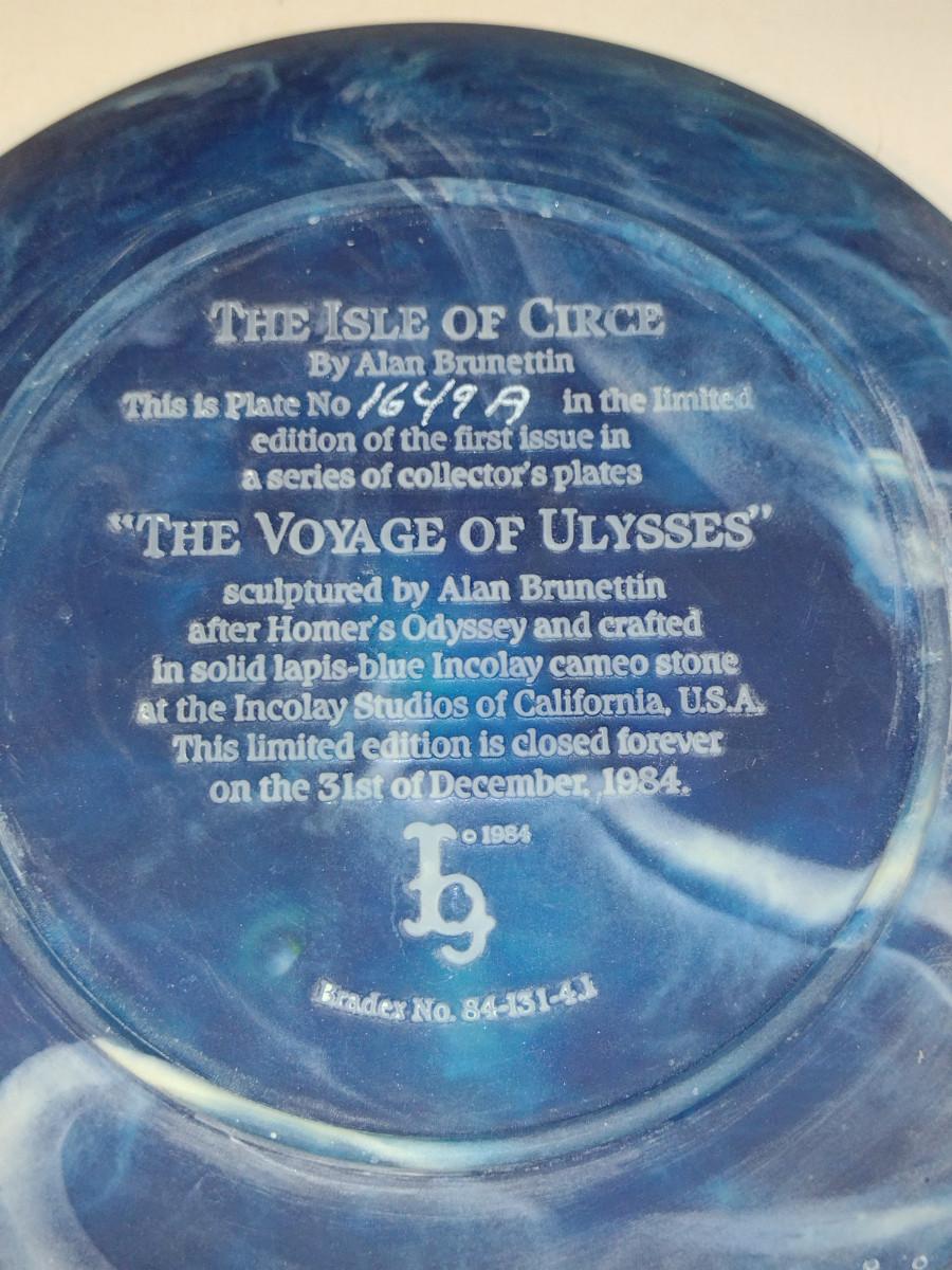 'The Isle of Circe' Numbered, Limited Edition Plate in Lapis Blue Incolay Stone- Approx 8 1/2" in Diameter