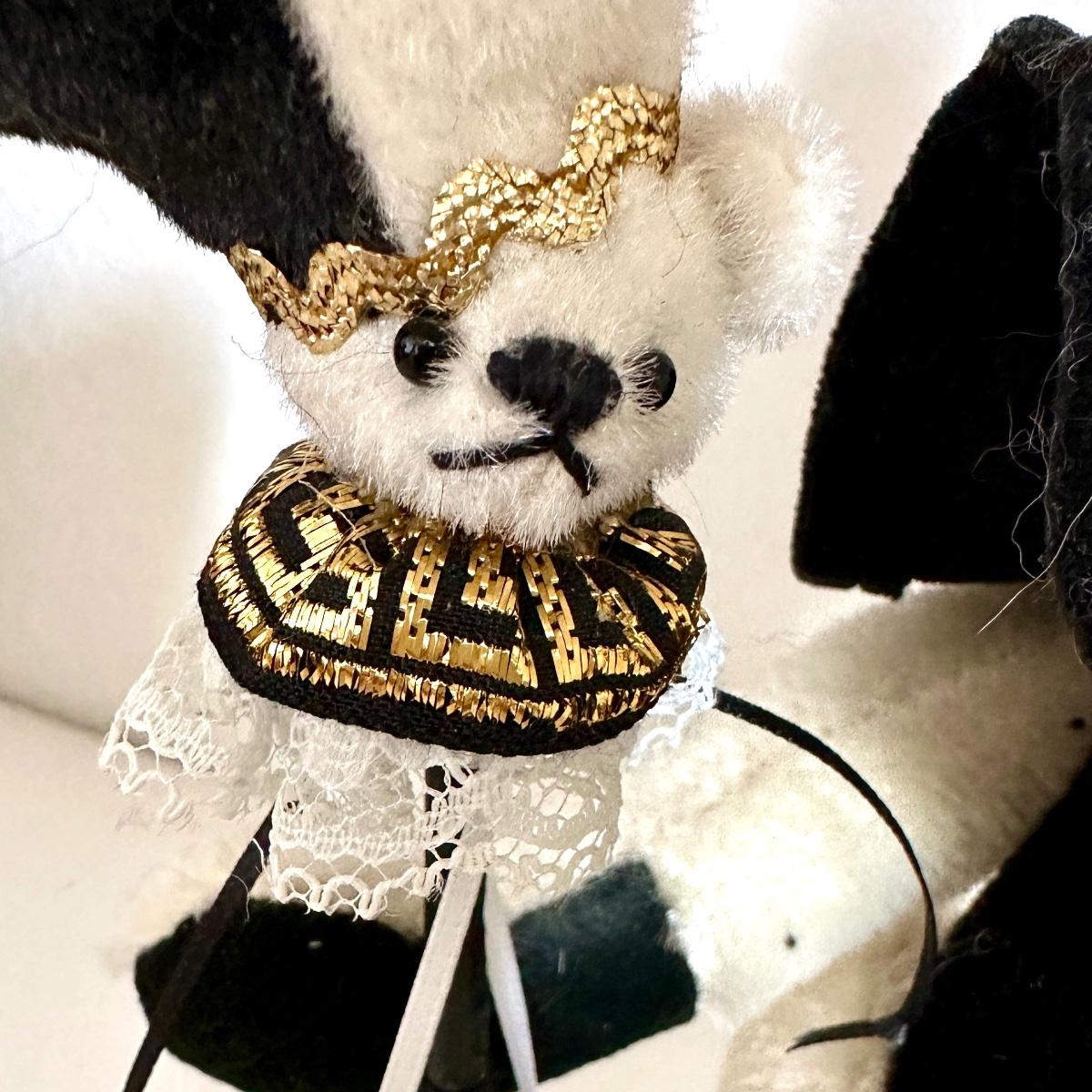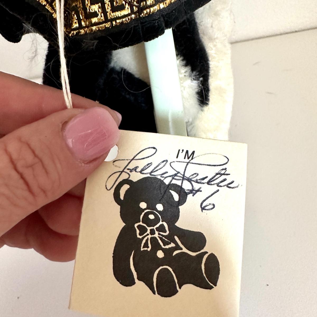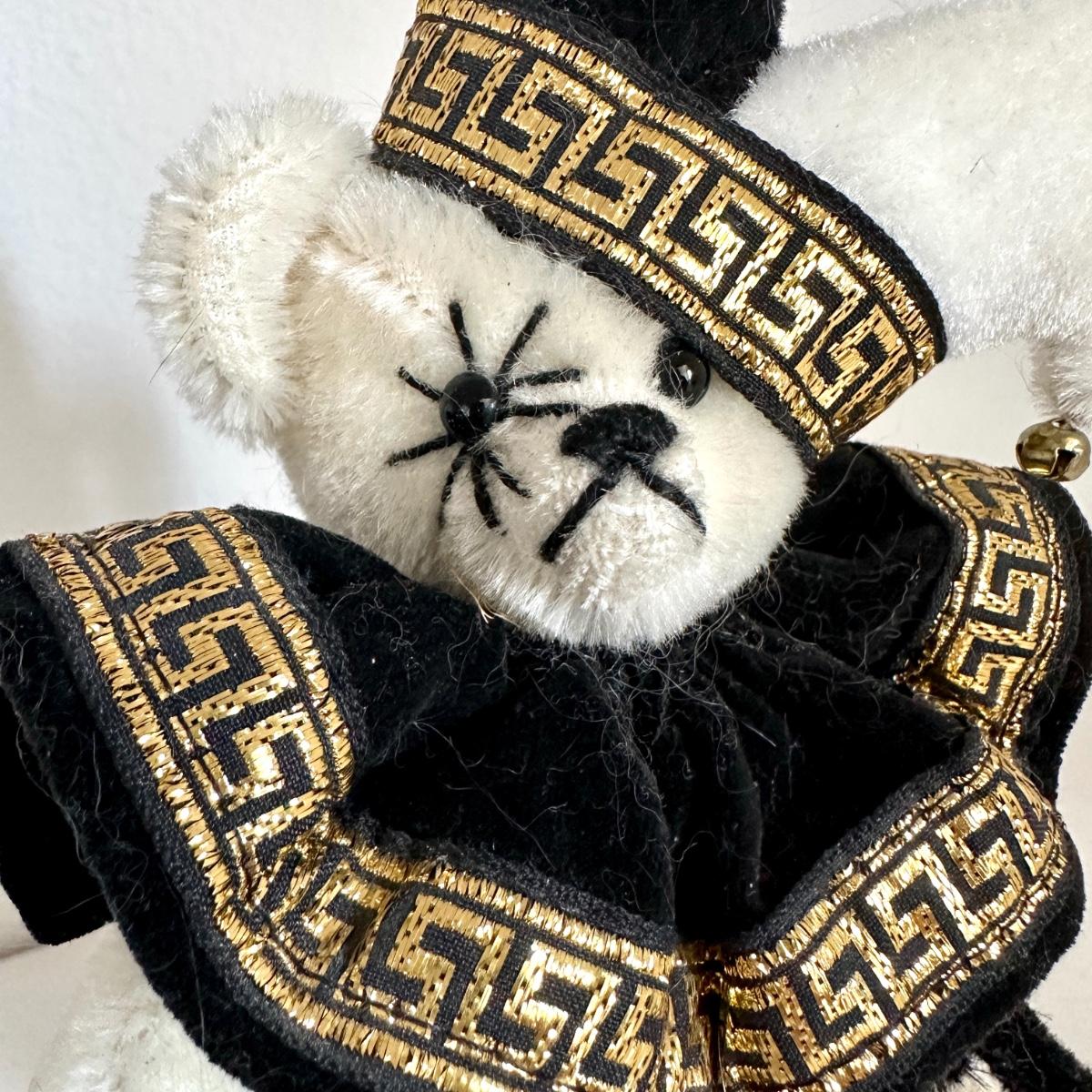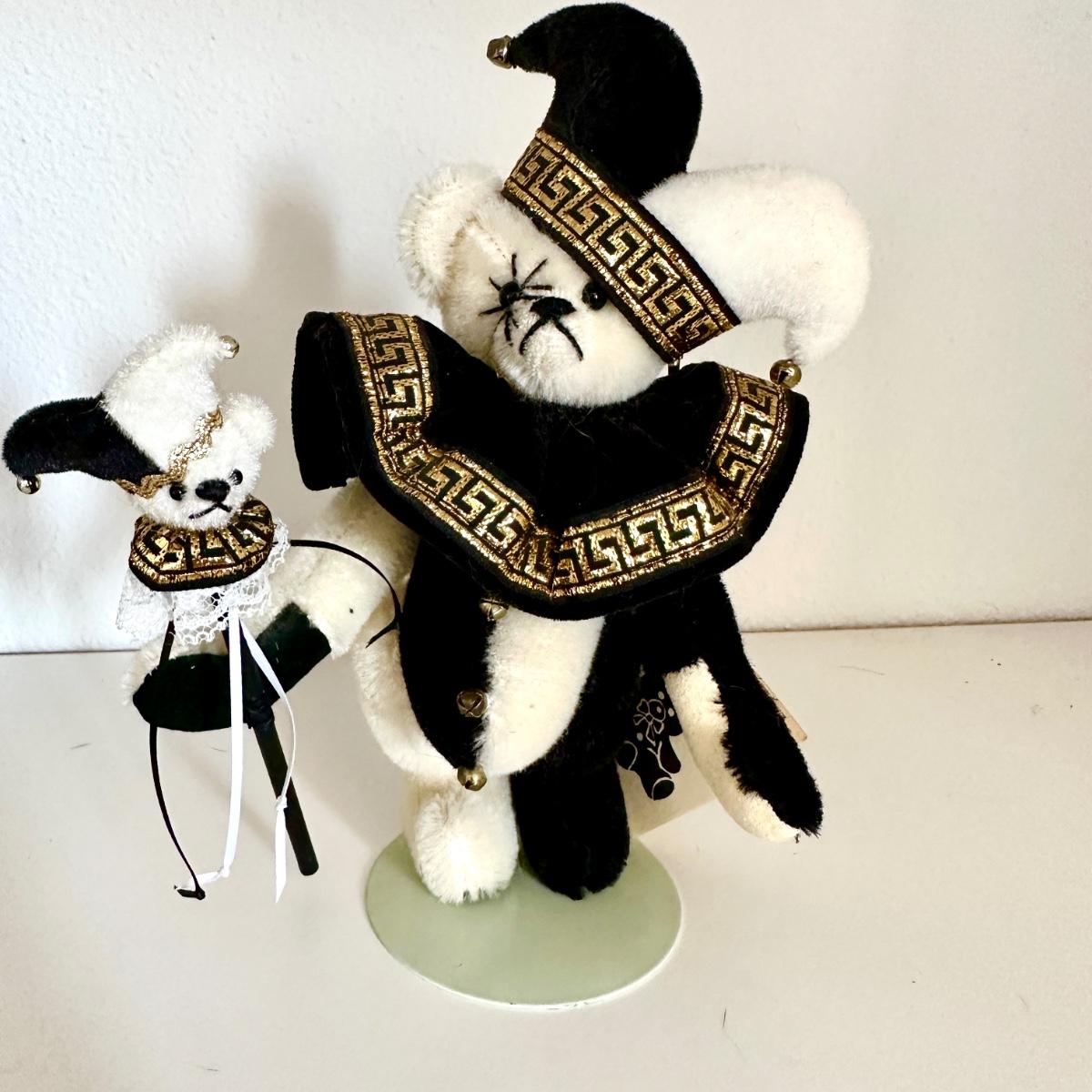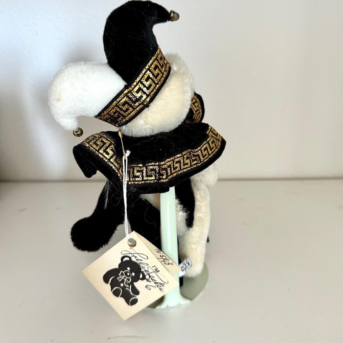 *The Jolly Jester by designer Carol Jones. Black and White fur with ultrasuade paws. Carries a puppet.