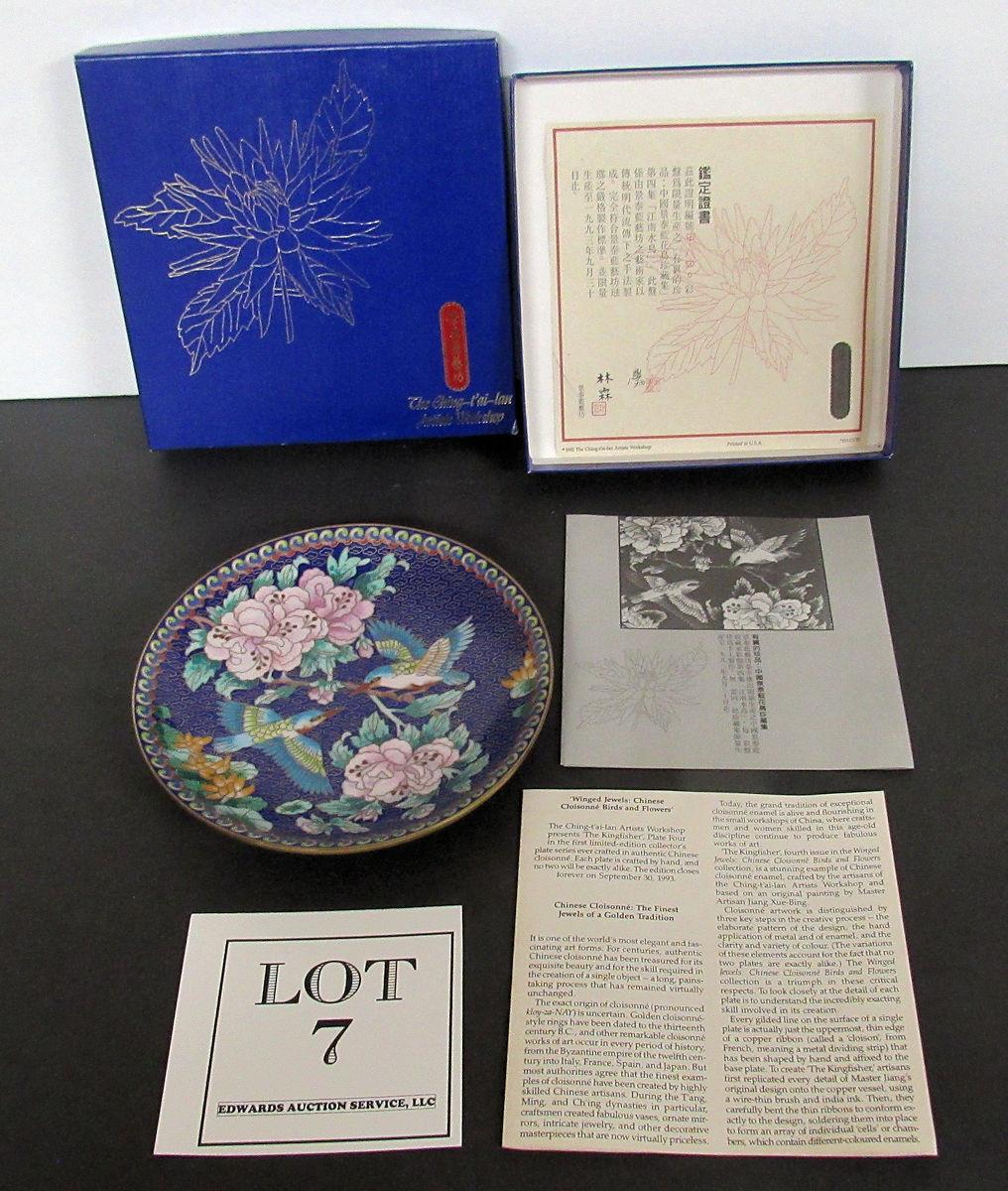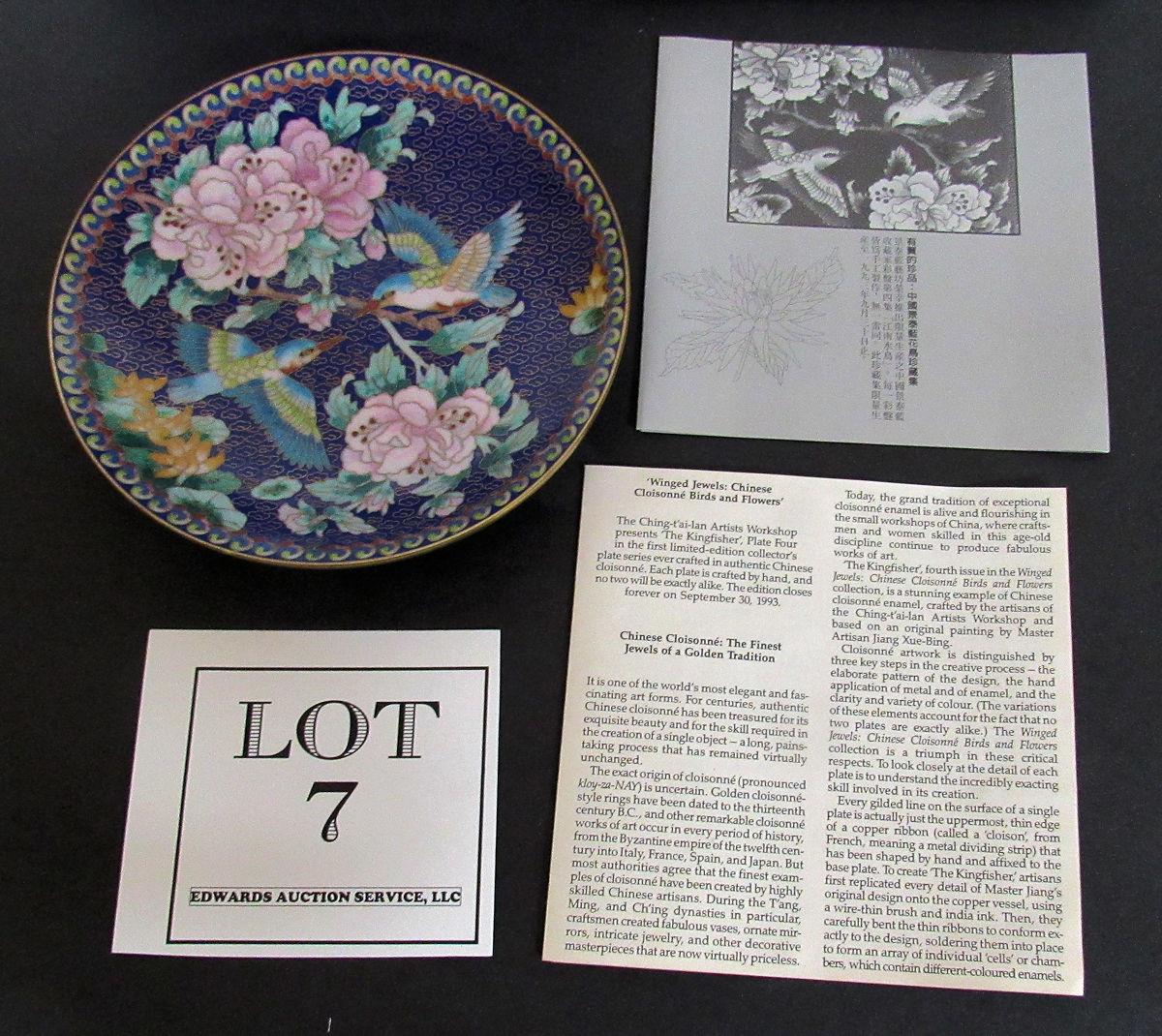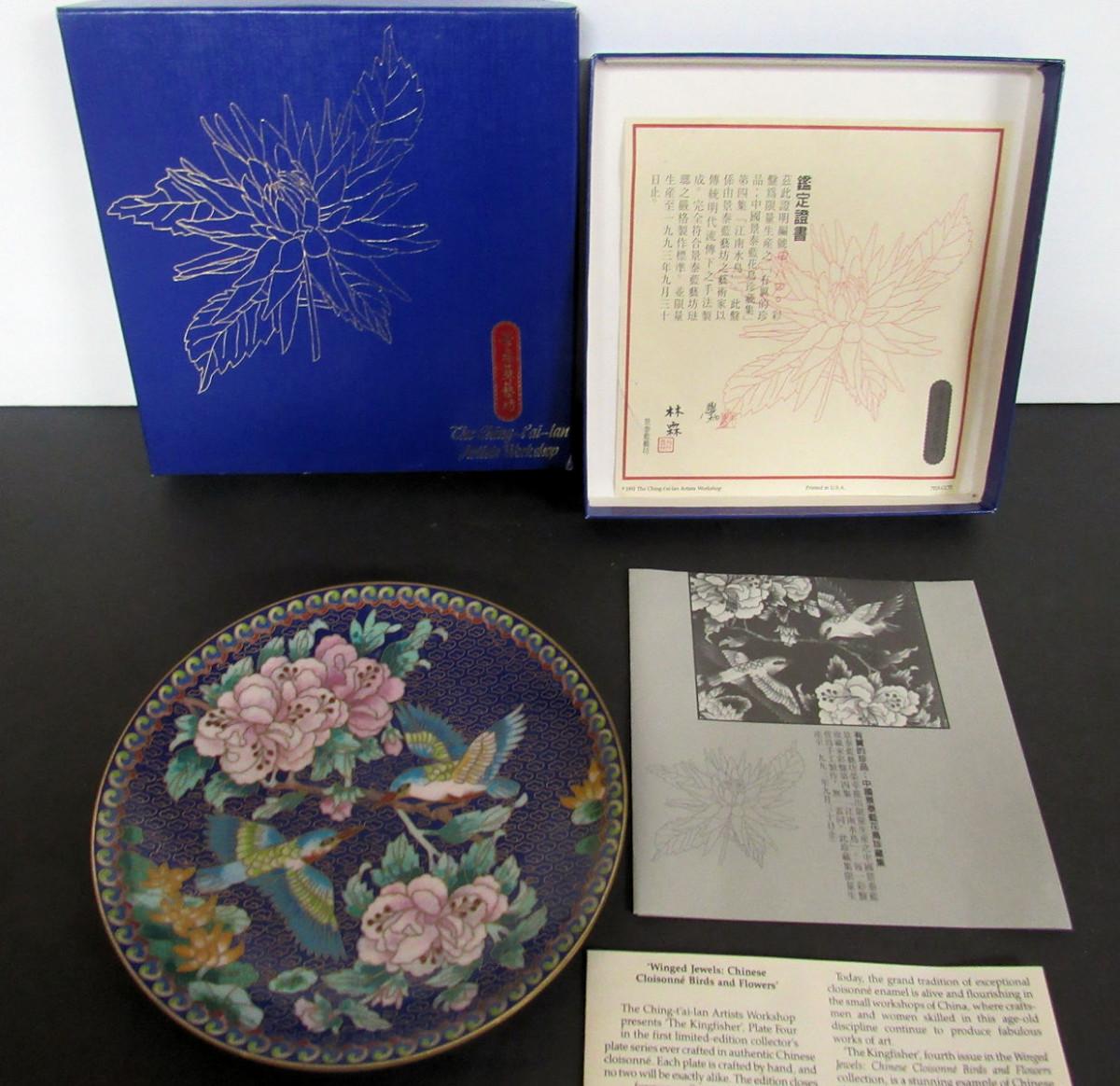 The Kingfisher, 1992, 4th In Series Winged Jewels Chinese Cloisonee Plates, See description