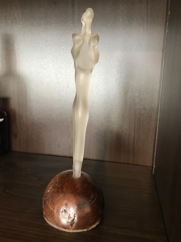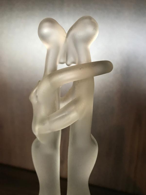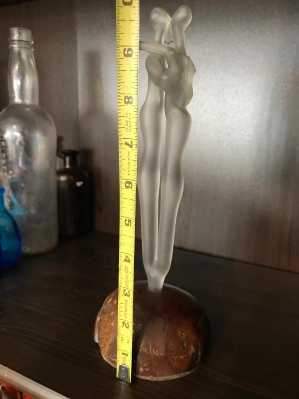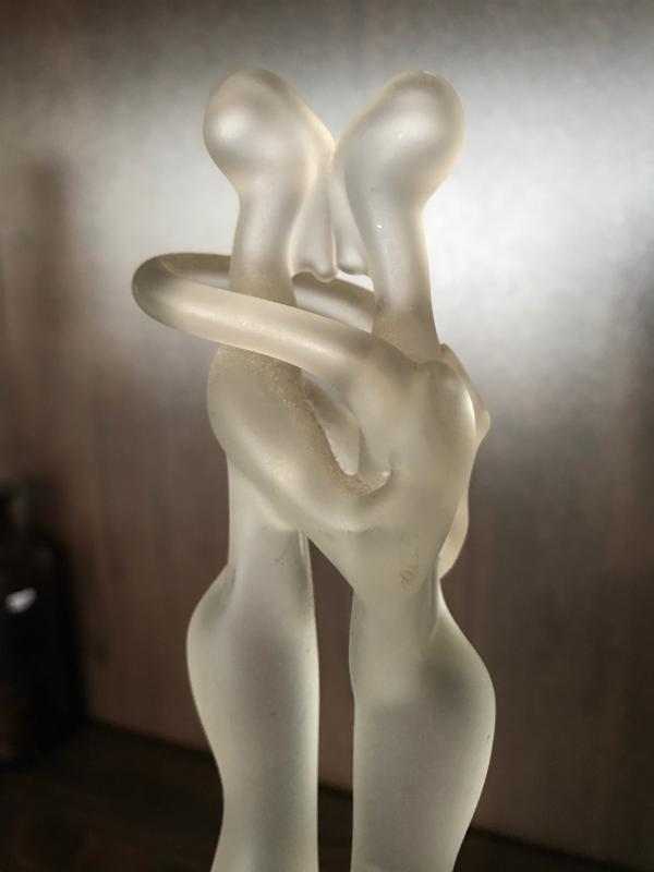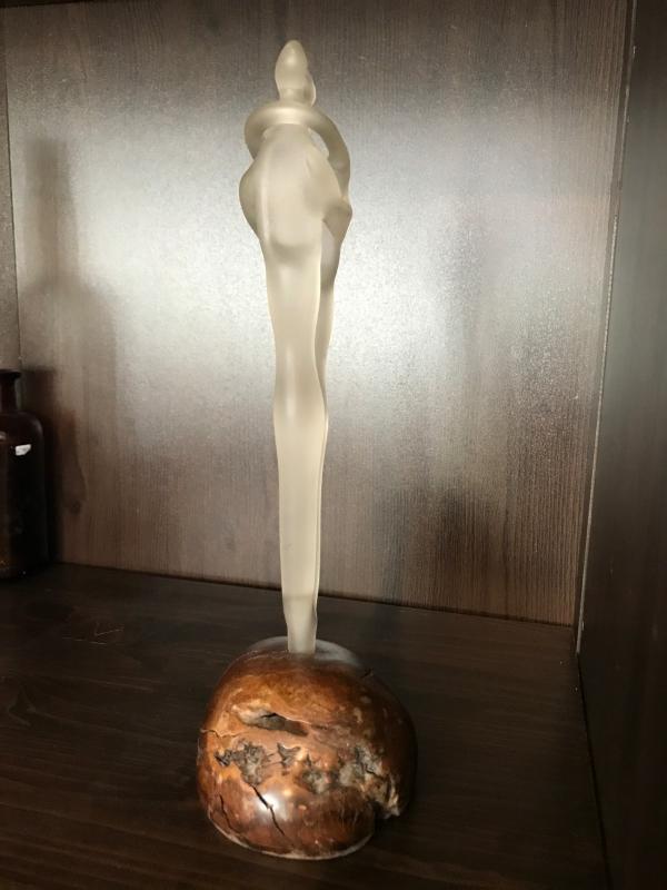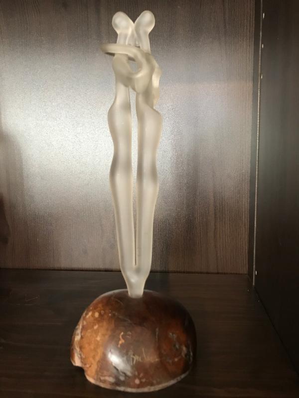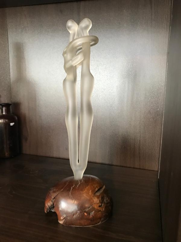 "The Kiss" Glass Sculpture on Burlwood Base [1200]