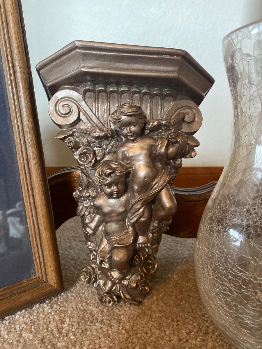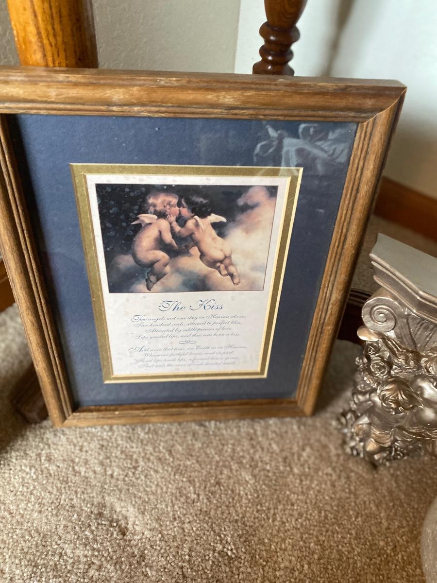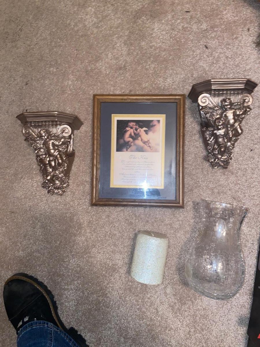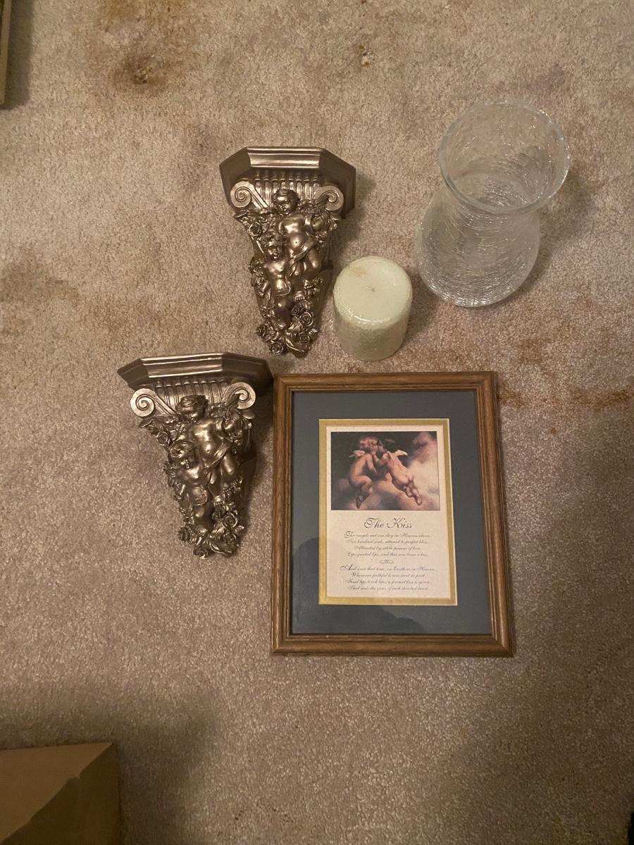 THE KISS PRINT, ANGEL CURTAIN SASH HOLDERS, CANDLE AND VASE