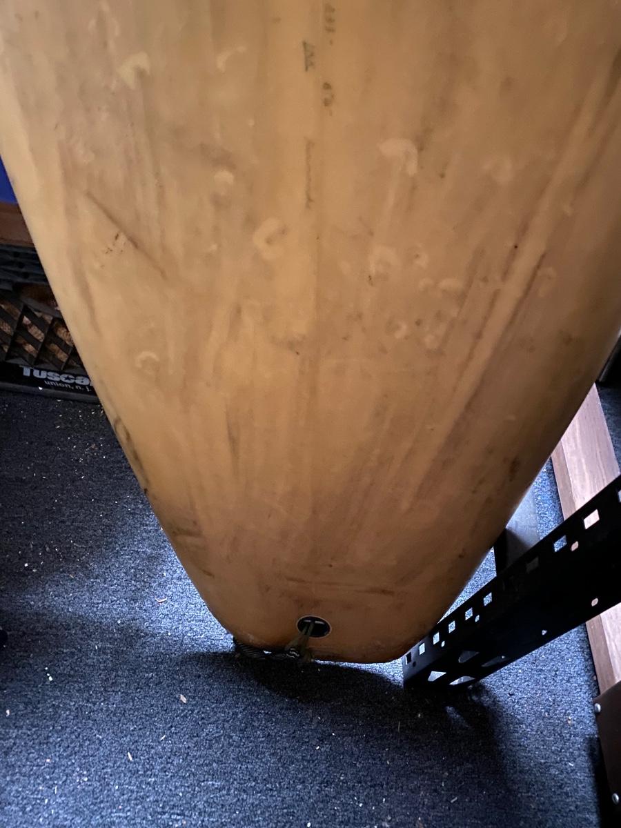 fiberglass surfboard, 6' tall. Needs some work, but would be a fun project!