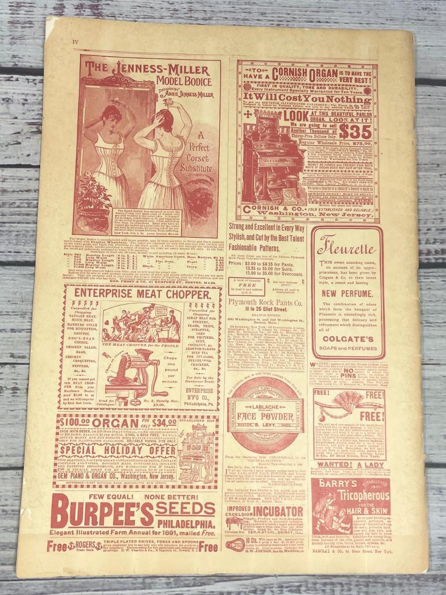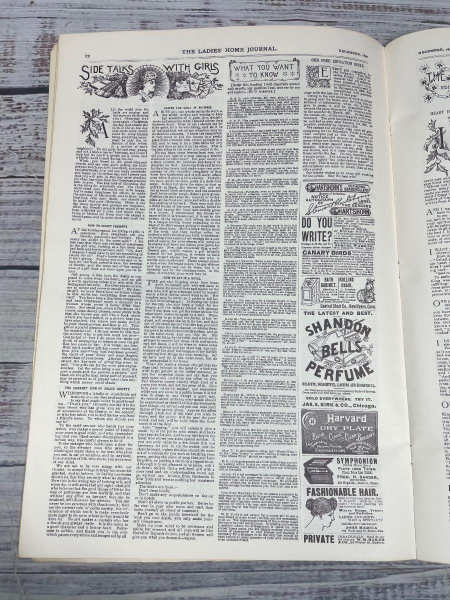 This magazine is in good shape considering how old it is. The inside has very small font and is packed with information geared towards women. There is some rips and folds on the pages but not too much.