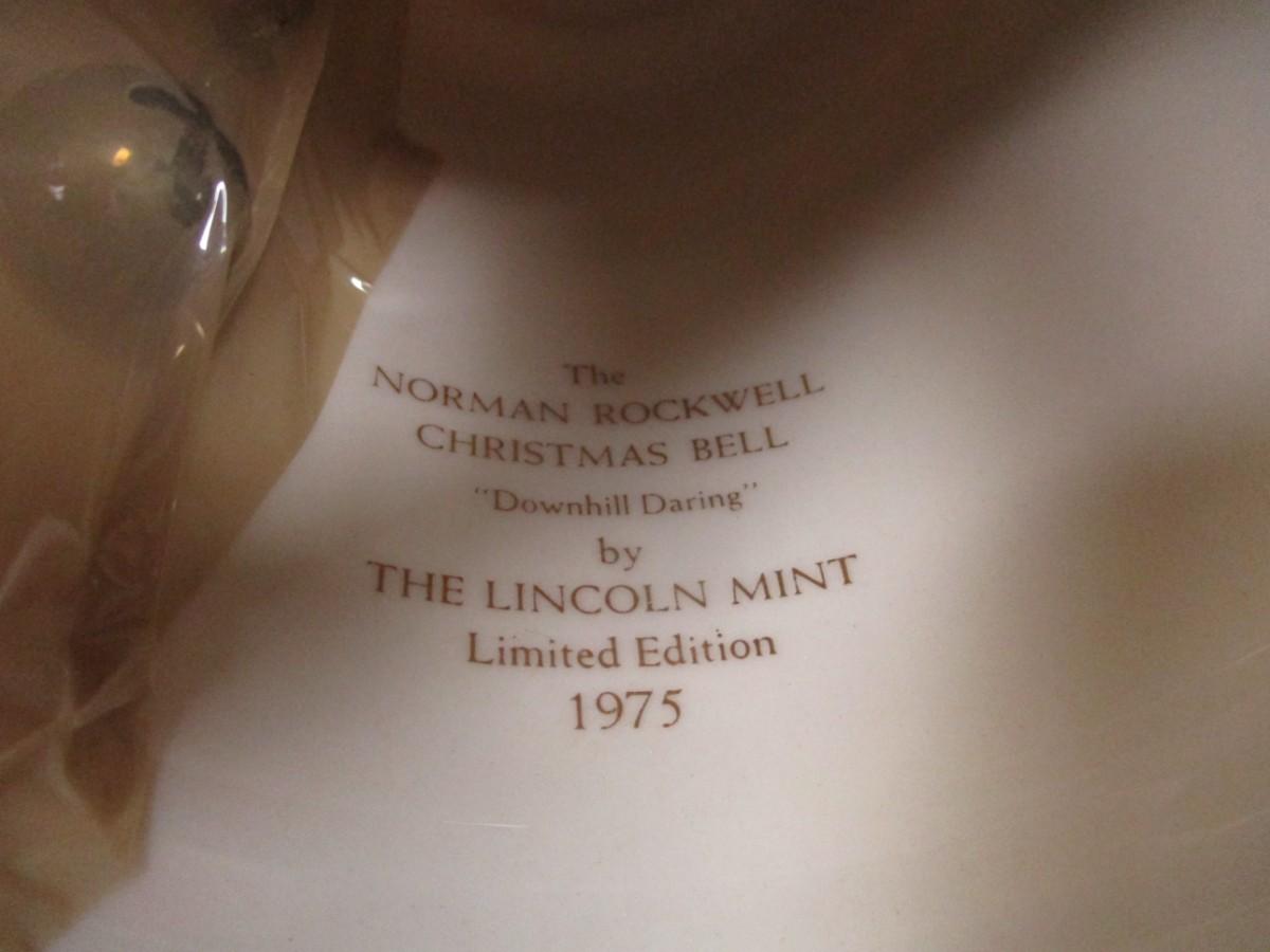 "The Lincoln Mint" "Downhill Daring" Christmas Bell Norman Rockwell 1975