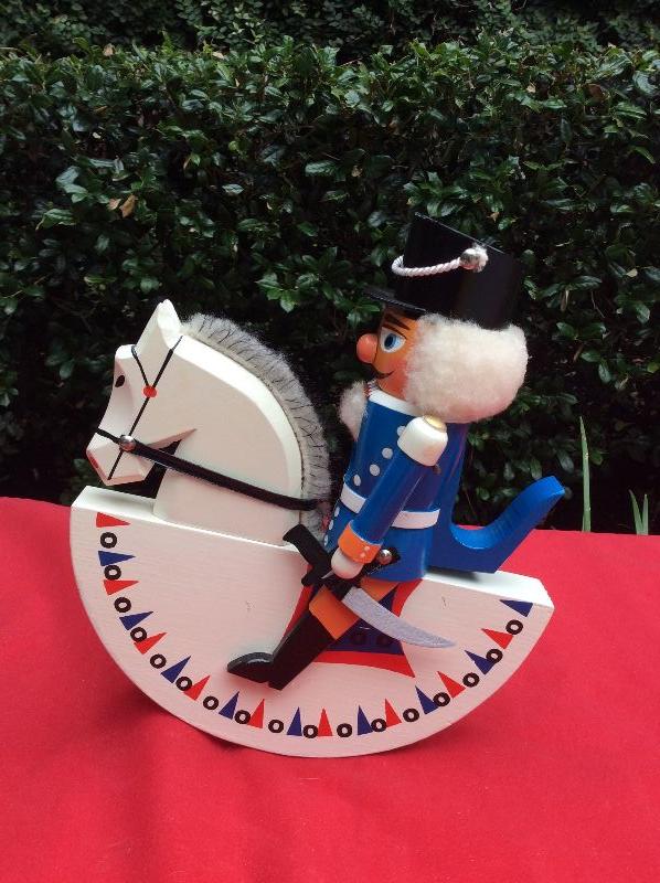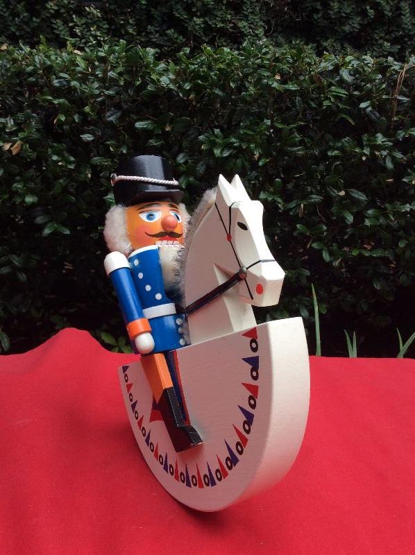 The success story of the riding nutcracker has its origin probably in a 1933 campaign of the German winter relief organization, which provided assistance for families in need. To raise funds, they used to sell little badges with motives changing every month. In 1935, Max Korb designed a badge with a nutcracker on a rocking horse. This badge was immensely successful and sold over 12 million times. It made the horseman nutcracker on his horse popular in all of Germany.