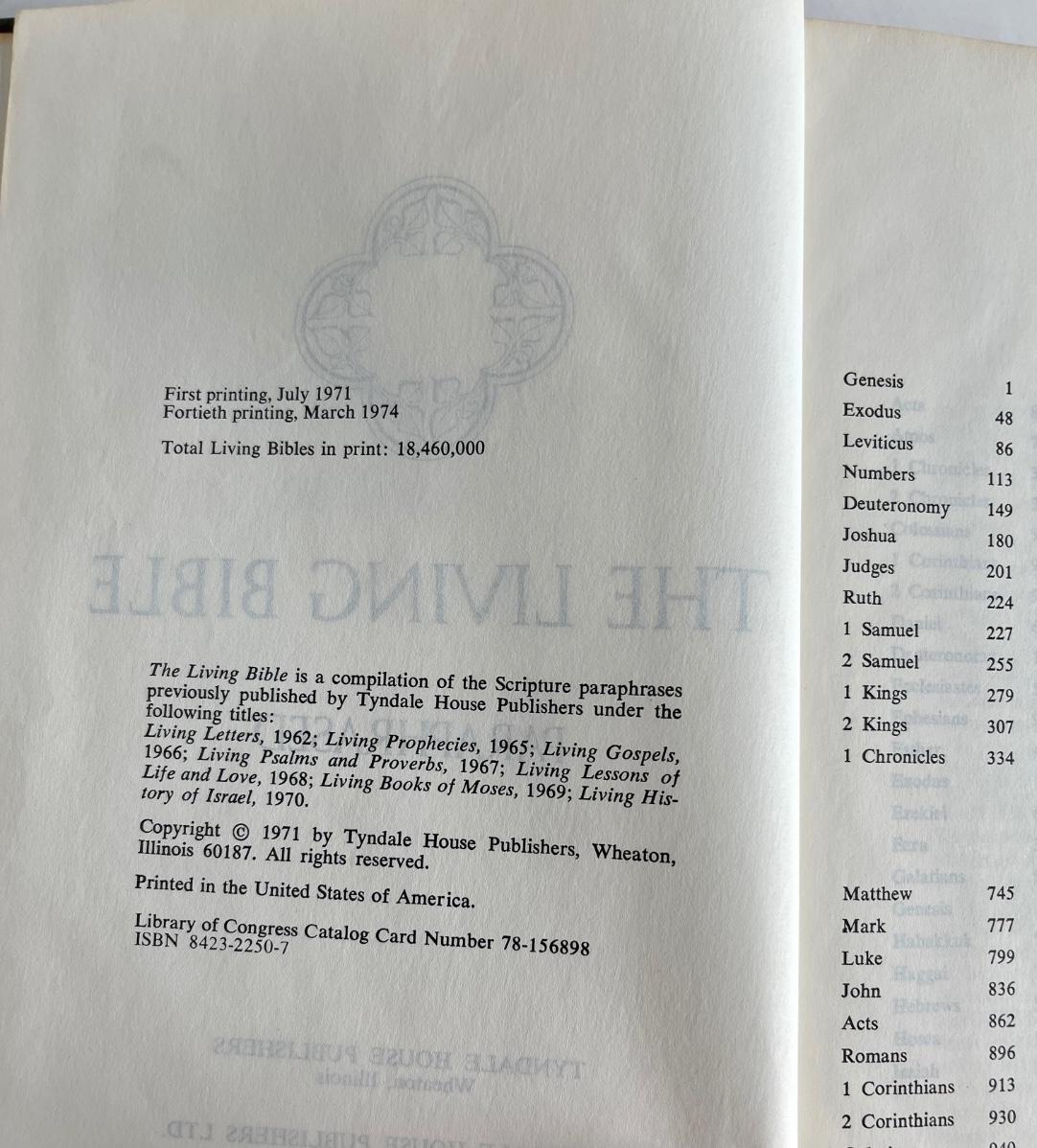 The Living Bible Paraphrased fortieth printing 1974 Tyndale House Publishers