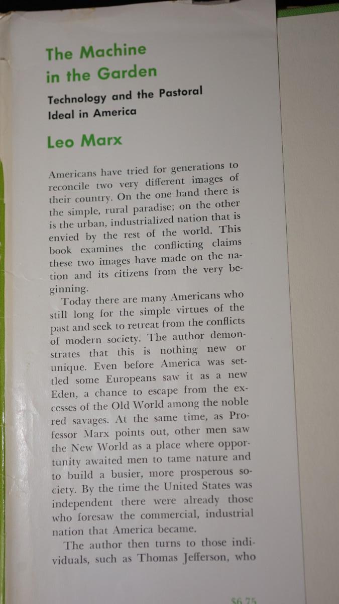 THE MACHINE IN THE GARDEN BY LEO MARX FIRST EDITION 1964