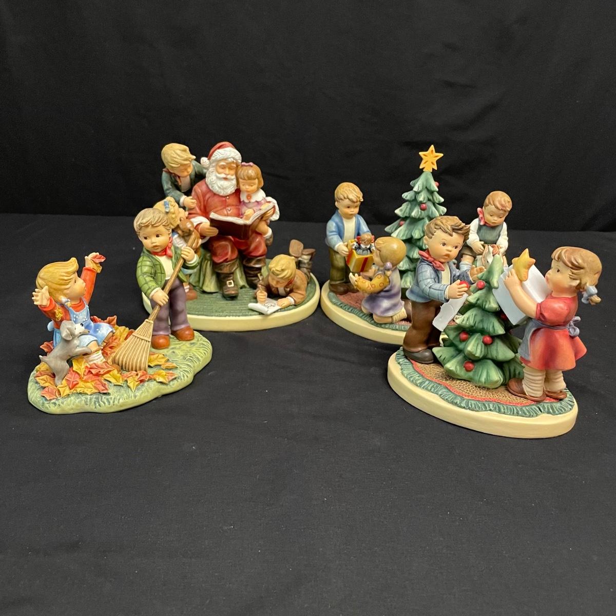 Four newer Hummel pieces, three for Christmas and one titled Fall Frolic. Fall Frolic is undated, but seems similar in age as the 2015/2016 Christmas figures. All appear to have been nicely kept. Storytime with Santa measures 7” x 5.75” x 6”H. See images. Shipping available.