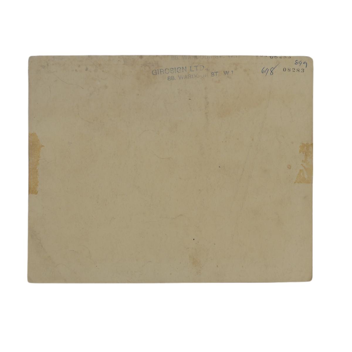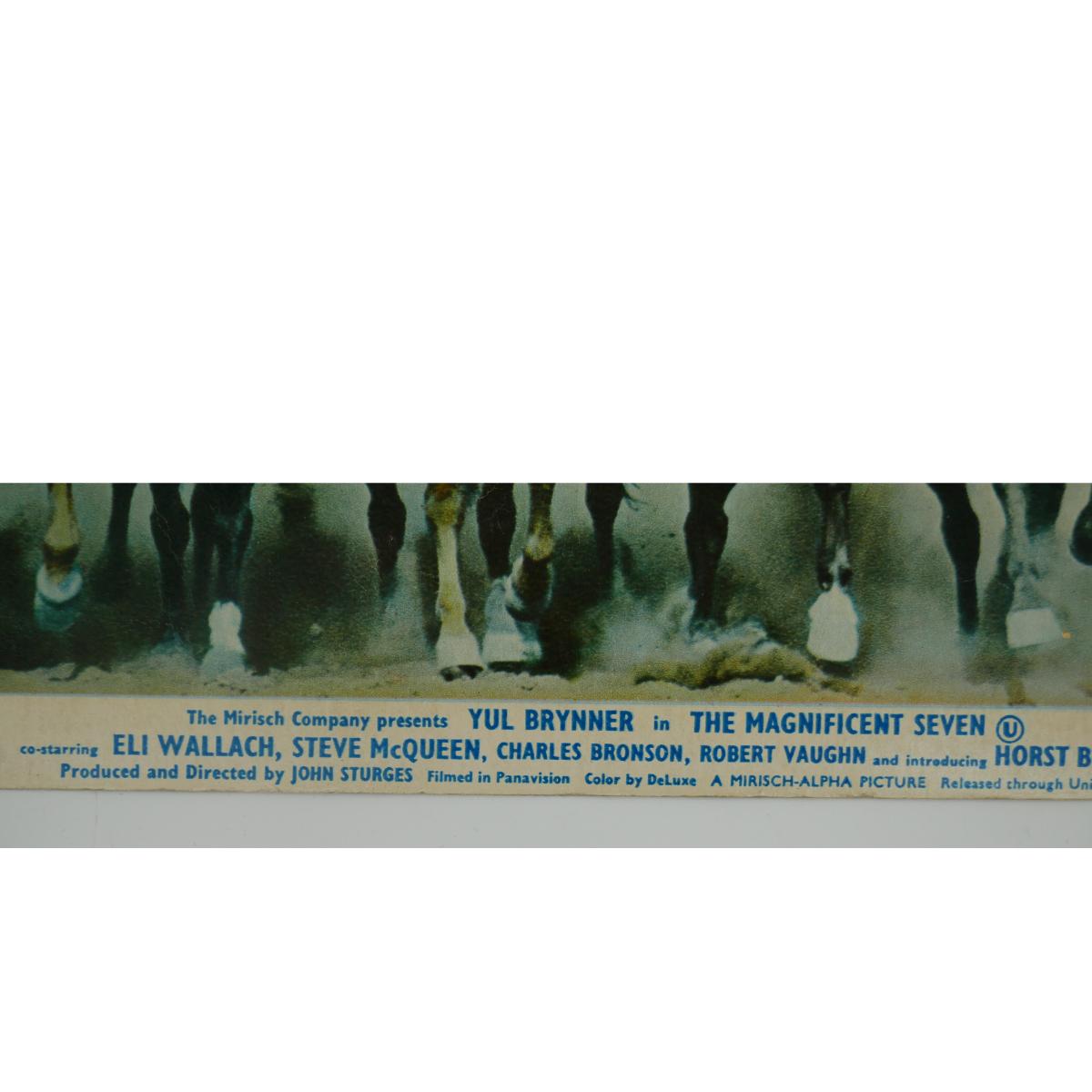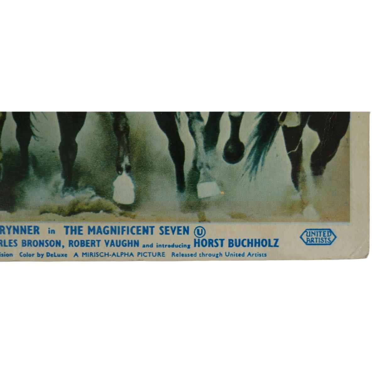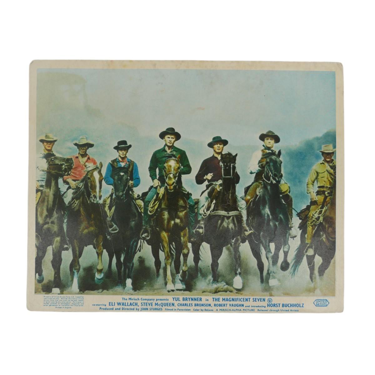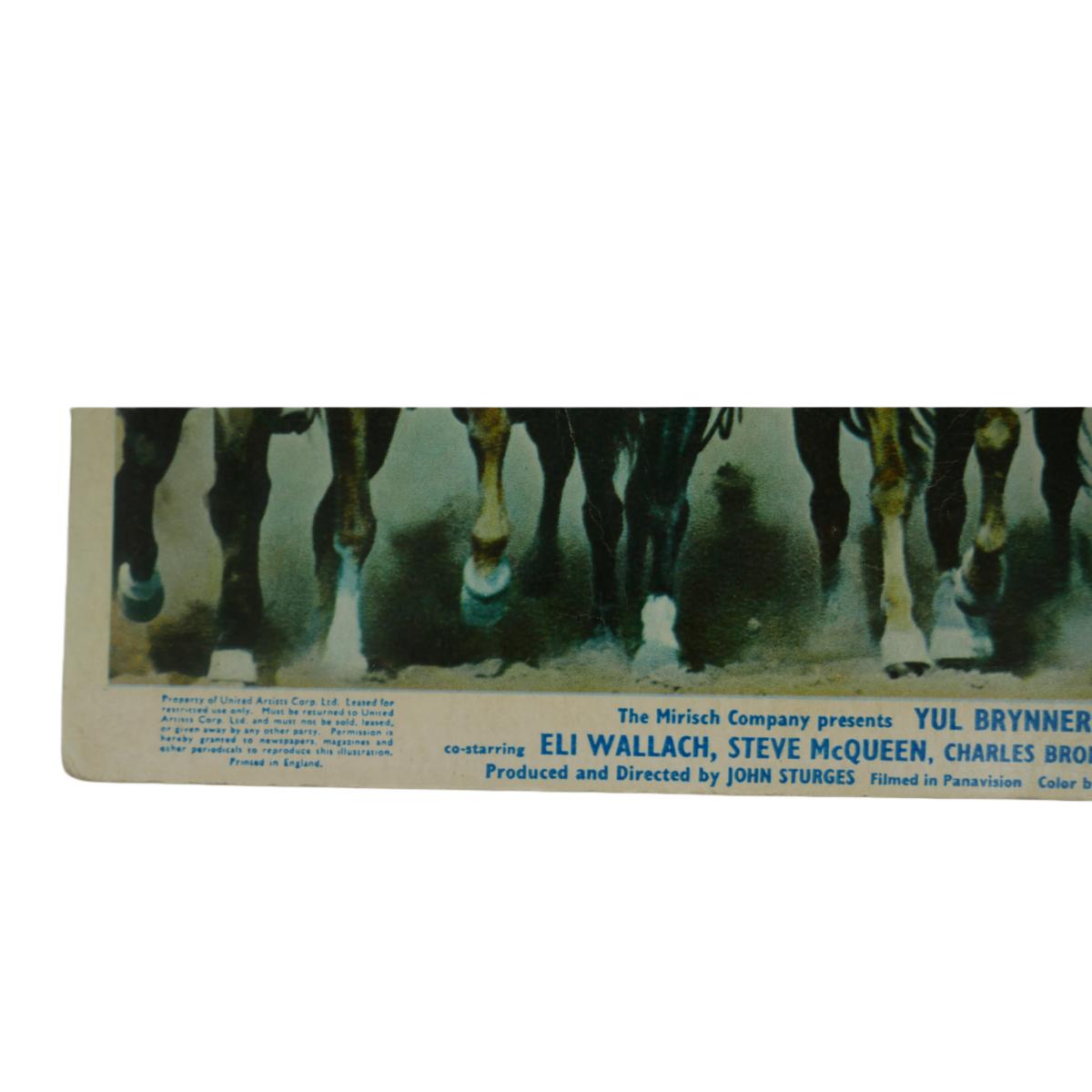"The Magnificent Seven" movie lobby card print from Girosign LTD, 88 Wardour St W1, London, England c. 1960s. Art measures L 9.5" x H 7.5" and has visible wear from age. Great piece of film history! (A51)