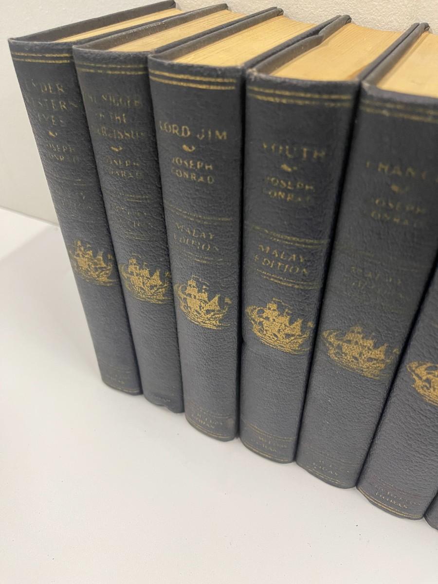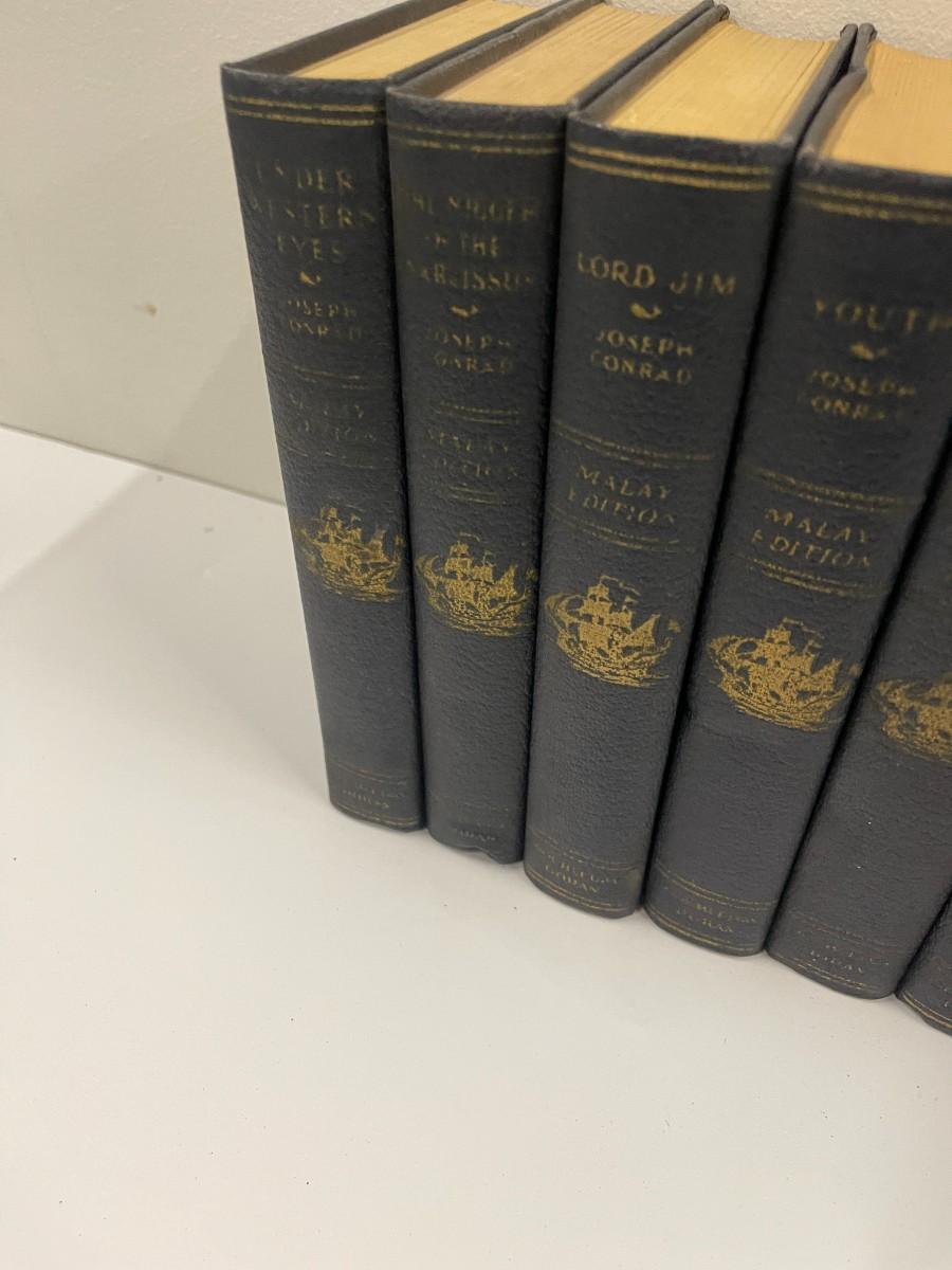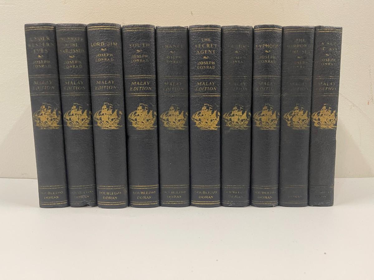 The Malay edition of the Works of Joseph Conrad in 10 volumes. Examine photos carefully for condition. Copyright 1921 by Doubleday. Each book measures approx 5" x 8"