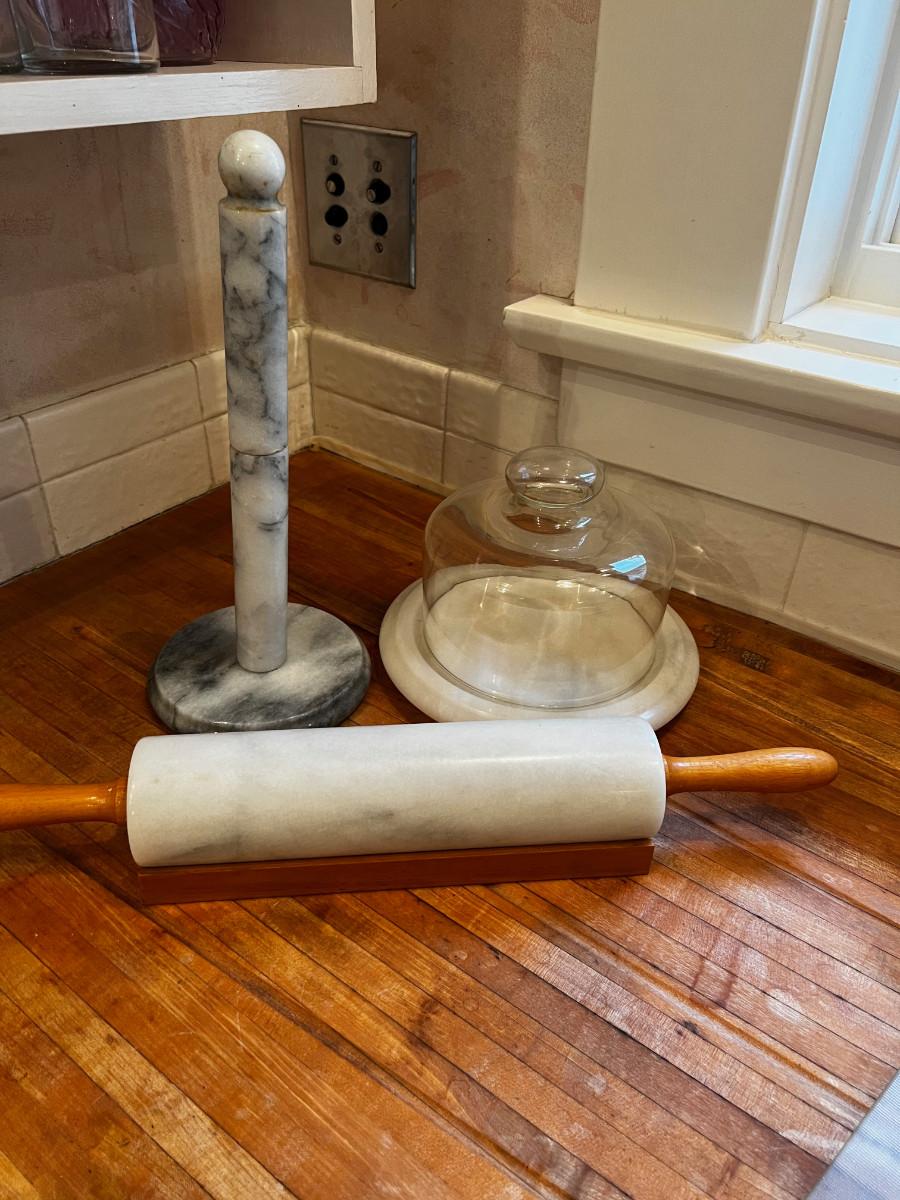 The Marble Set: Paper Towel, Rolling Pin and Covered Cheese Server