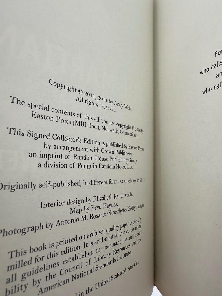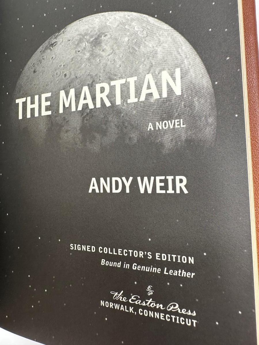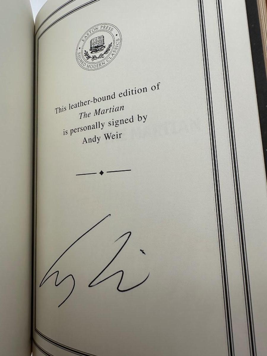 Beautiful Easton Press signed edition of The Martian by Andy Weir. Bound in genuine brown leather with gilt edges and satin bookmark. Signed by the author and appears unread.