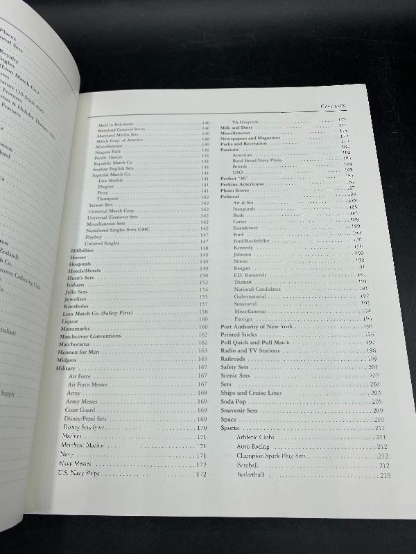 The Matchcover Collector's Price Guide. Copyright 1997. Extensive list of matchbooks broken down by theme. Prices may not be current but may help when trying to find a current price.