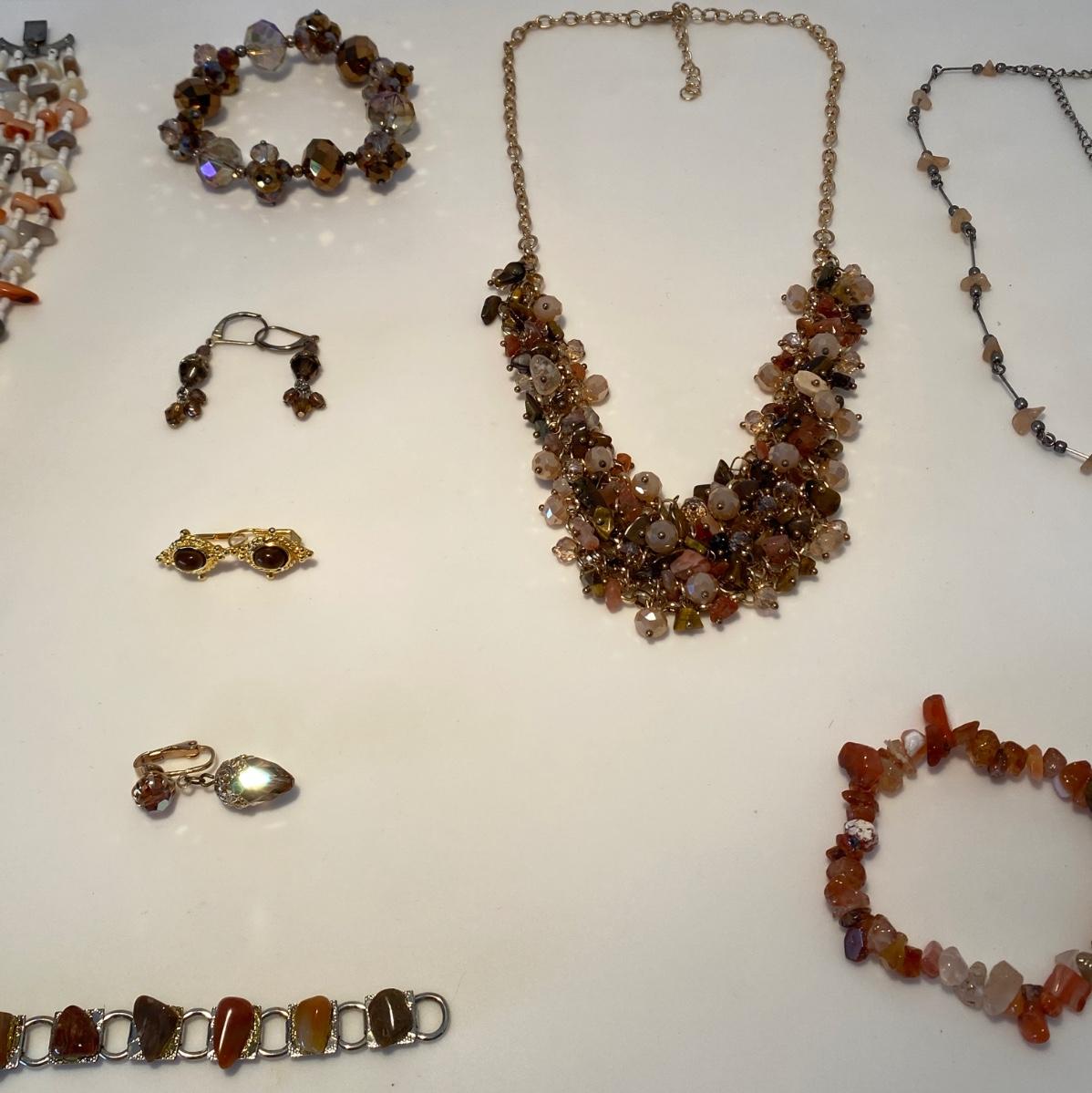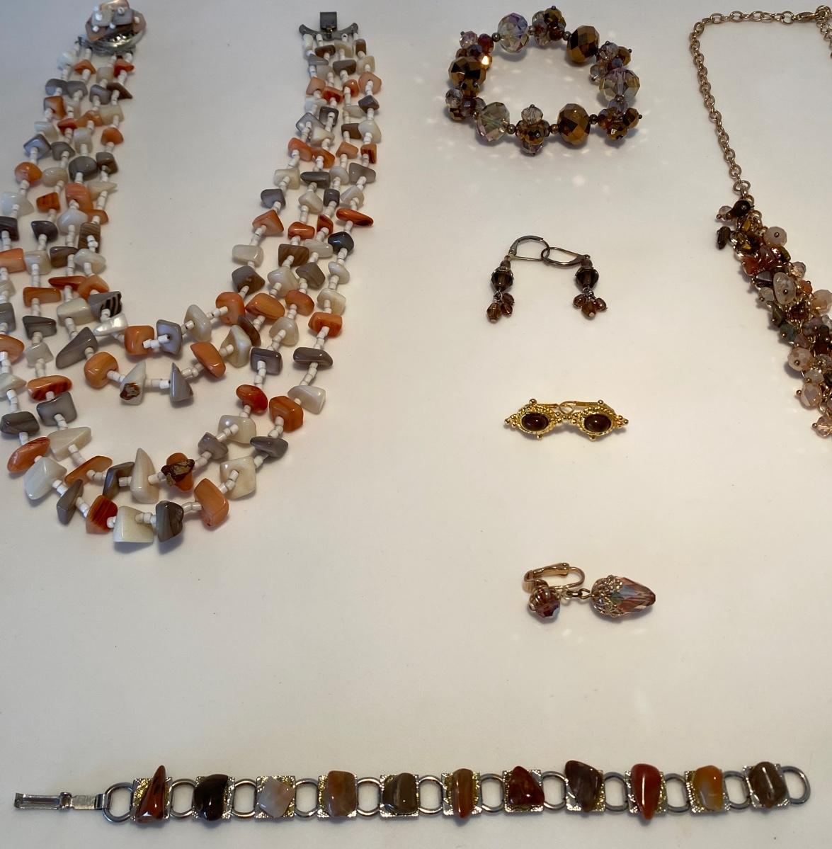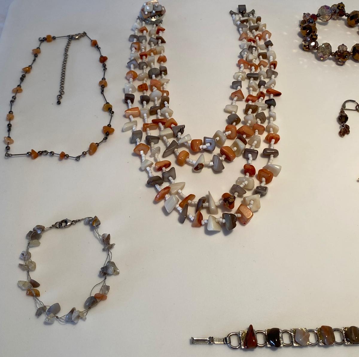 The natural stone, shell, and bead jewelry lot. Preowned and sold as is