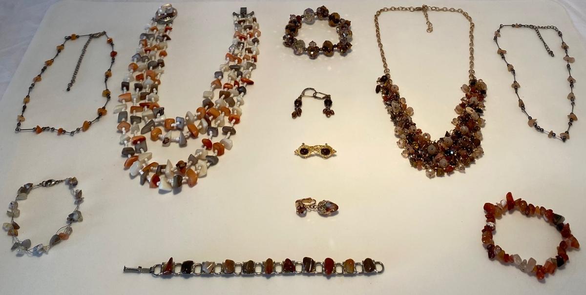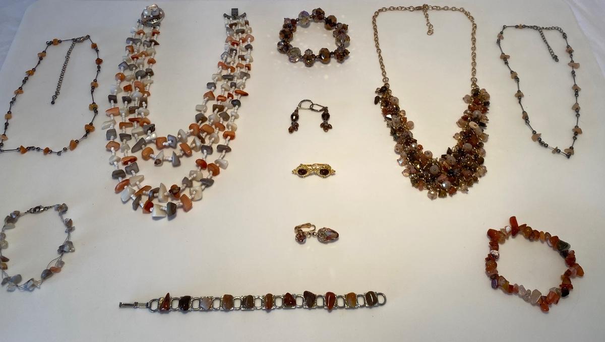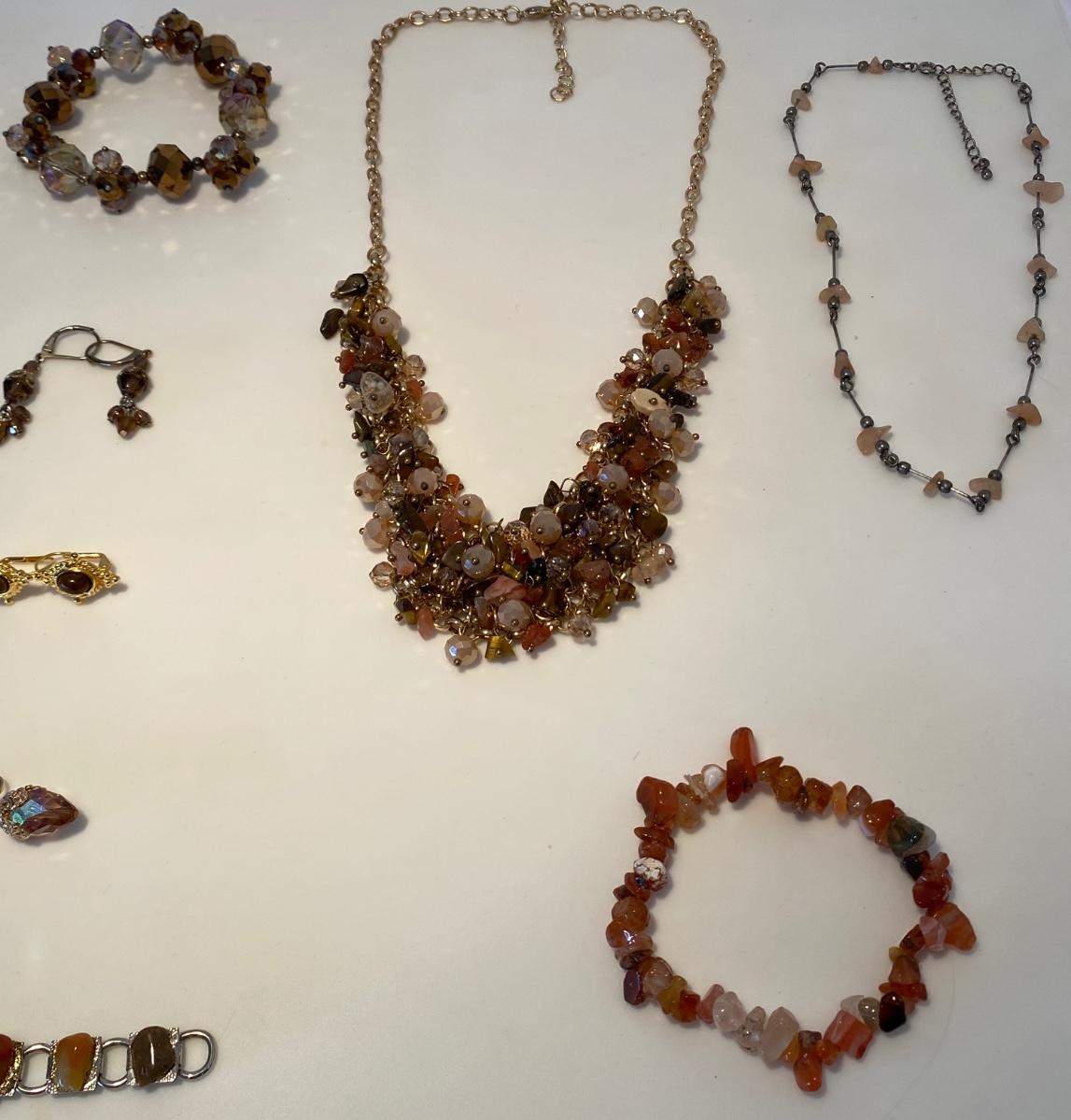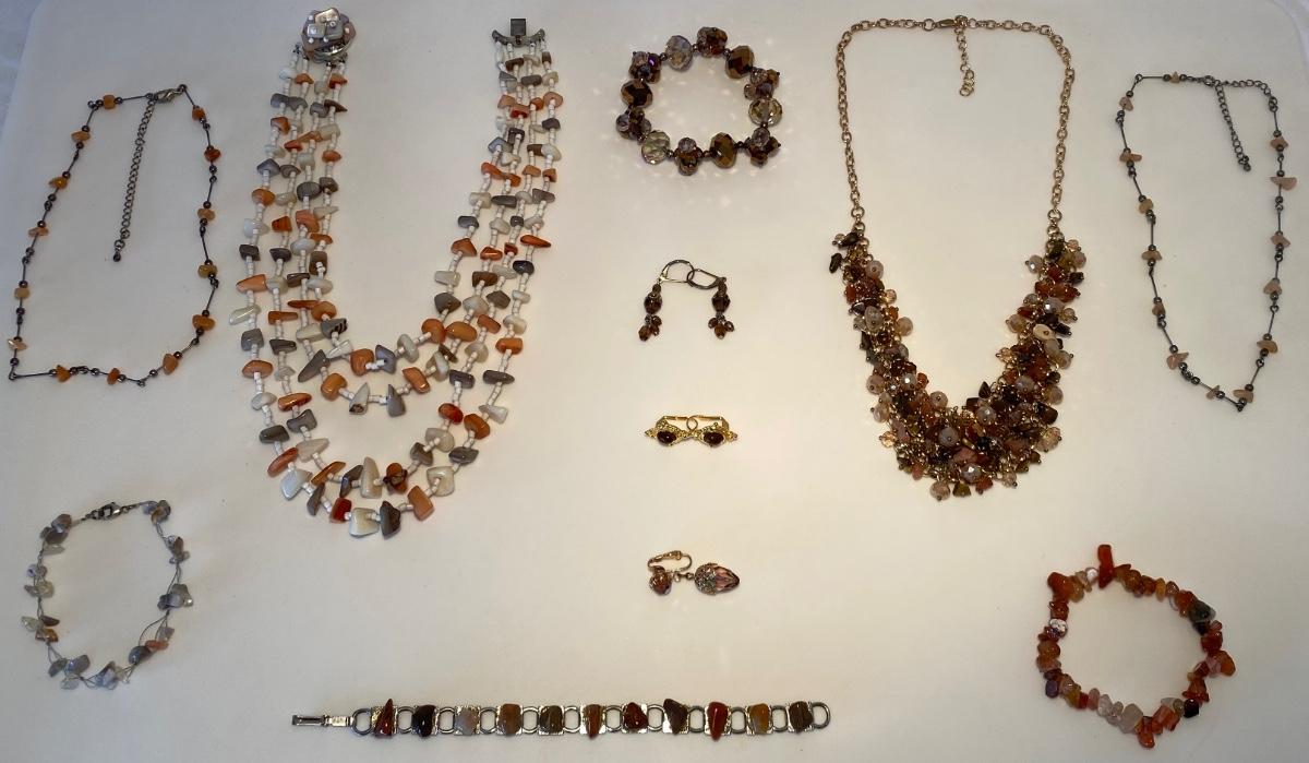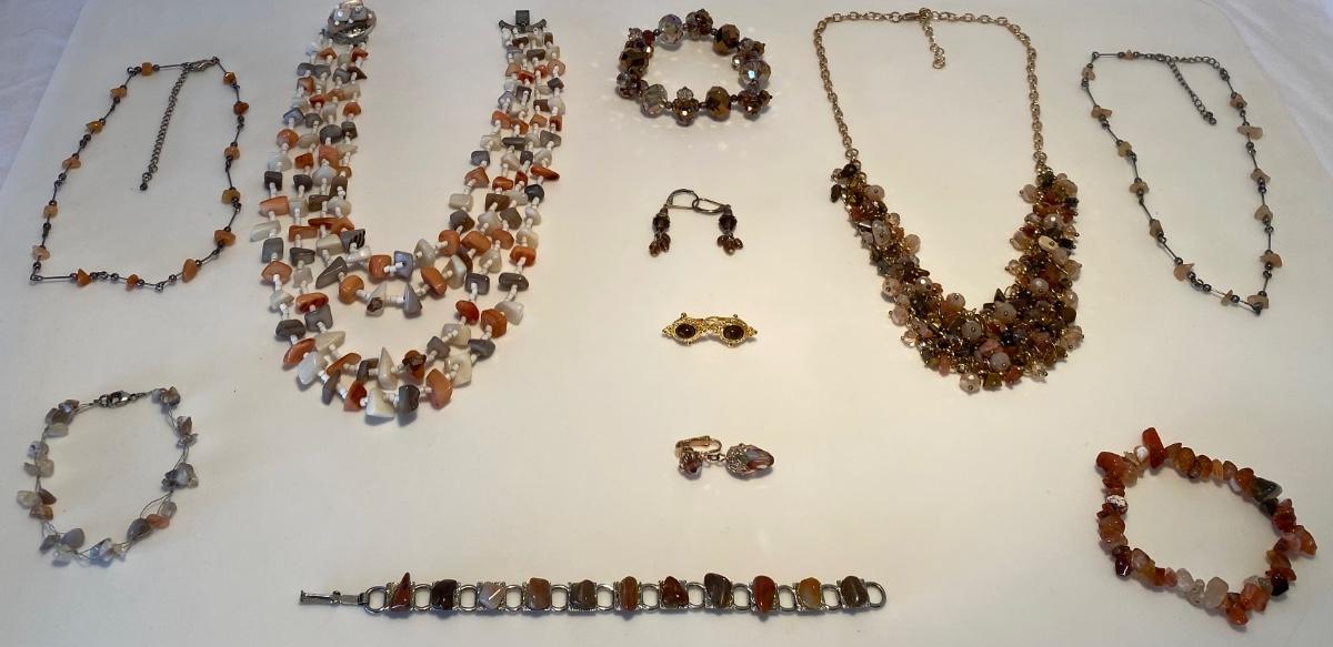 The natural stone, shell, and bead jewelry lot. Preowned and sold as is