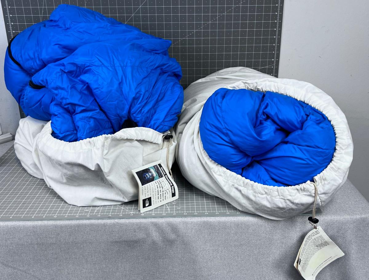 THE NORTH FACE BLUE KAZOO DOWN SLEEPING BAGS PAIR