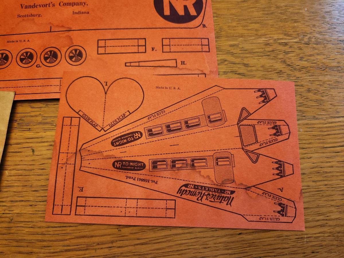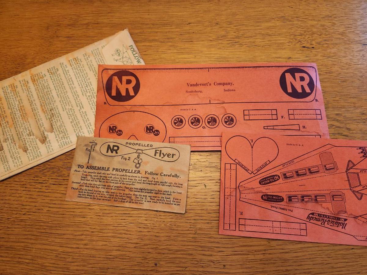 This auction lot is for The NR Flyer Paper Airplane. In envelope and unused - as found in the estate. This is a toy that was offered with the purchase of Nature's Remedy Tablets. This item has the imprint of Vandevort's Company, Scottsburg, Indiana upon it. Appears to be from the 30s or 40s - printed with the word's patent pending. Nature's Remedy Tablets were used mostly to relieve constipation. See photos item has water damage and envelope is missing a corner.