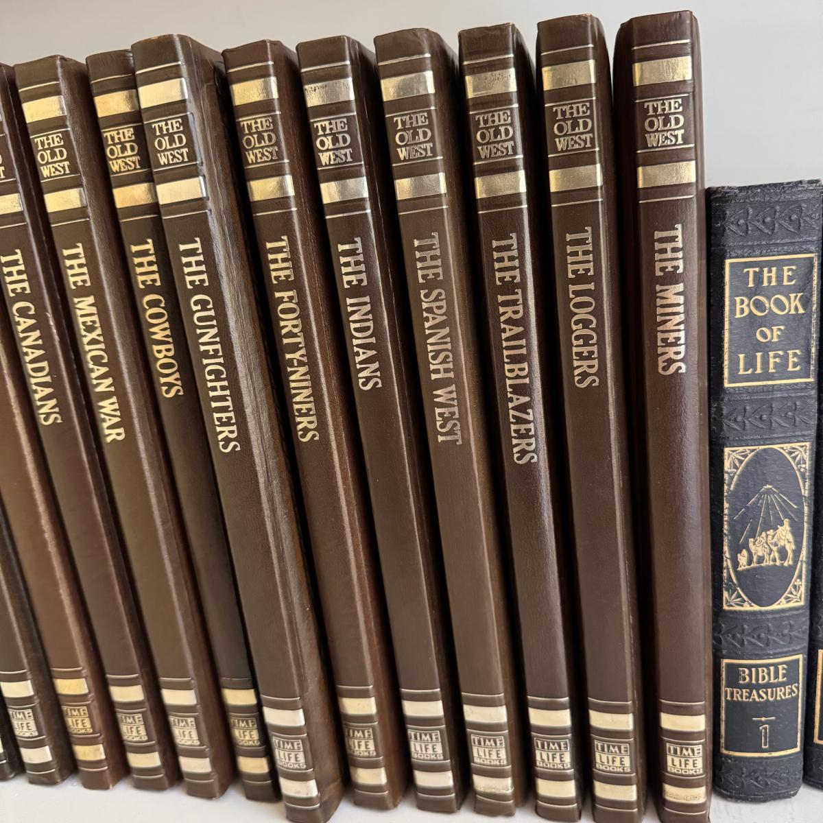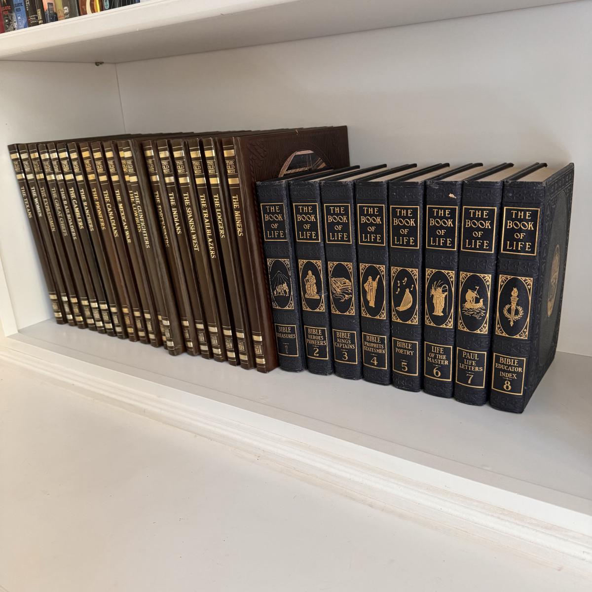 Lot includes 18 books from The Old West Series by TimeLife and eight books from The Book of Life. The Old West series books have leather covers. All books appear to be in great condition - see pictures included. Shipping available.