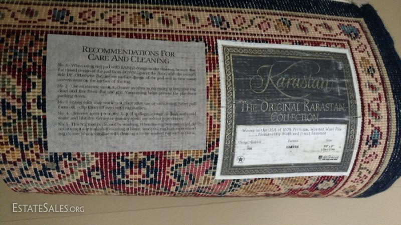 Black and red. Karastan 100% Premium, Worsted Wool Pile Area Rug (5'9 X 9'); permanently moth and insect resistant. Karastan brand is made in the US, they have been making rugs for decades, and their rugs are of superior design and quality. Made in India.