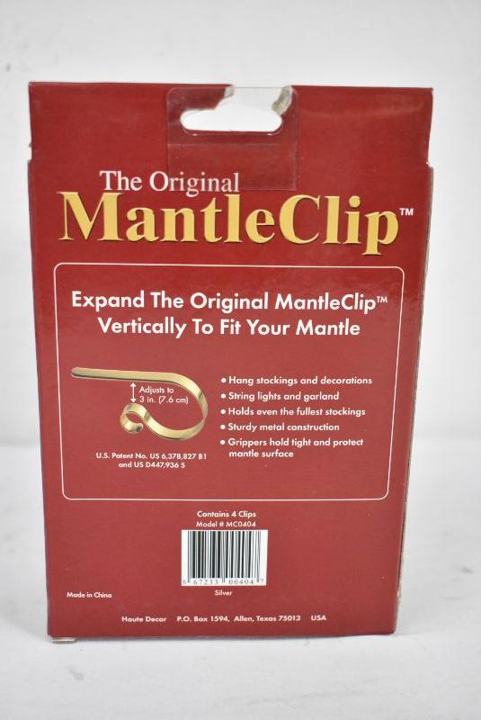 The Original Mantle Clip, Set of 4, SIlver Toned Metal - New