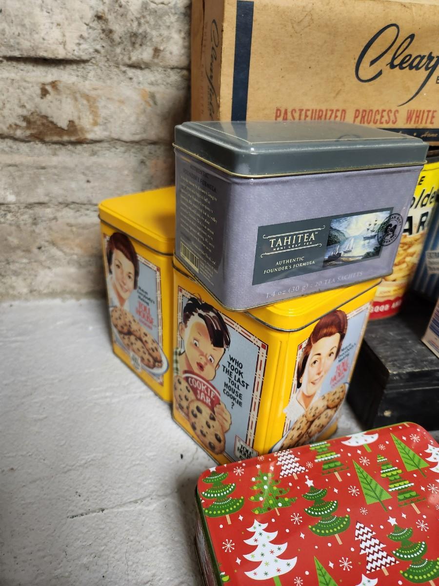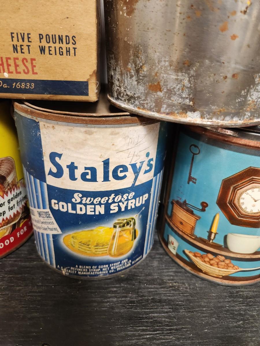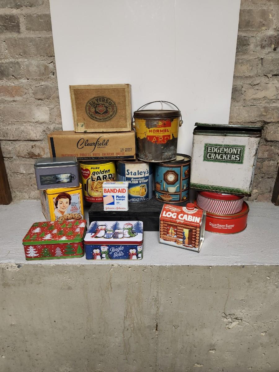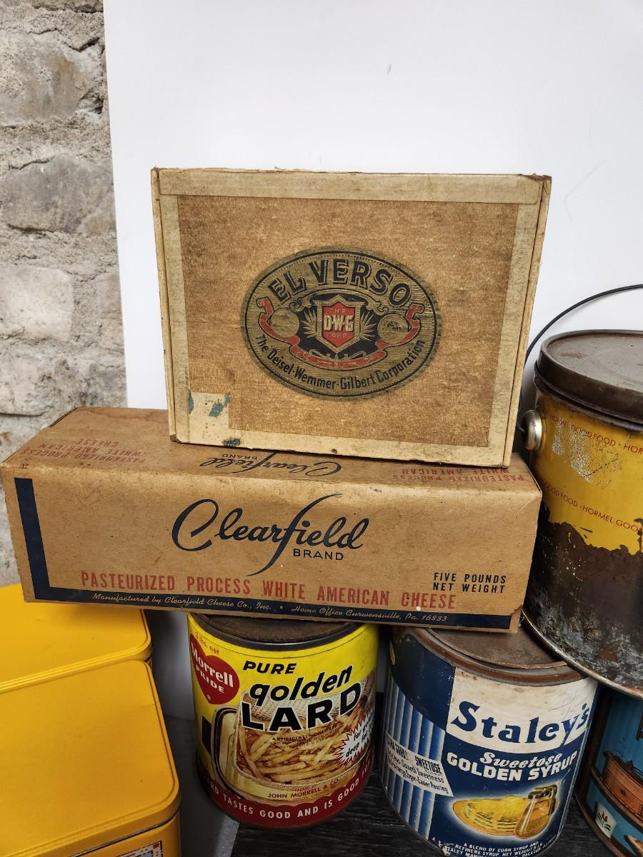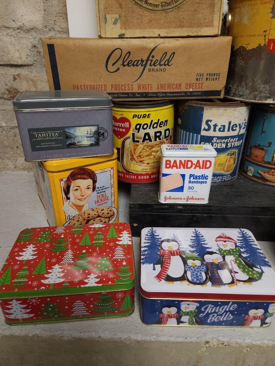Oh look at the cool tins in this lot! The cheese container is a box and is not metal