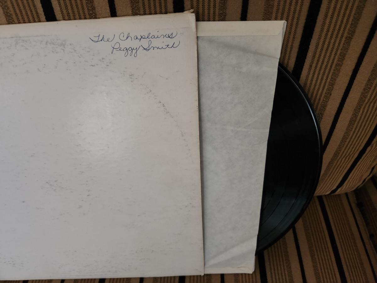 This auction lot is for a record album we are calling The Other White Album. Not by the Beatles but by a group called The Chaplains. A production of MIC Records. The 78RPM album is titled More Soul from The Chaplains. It appears to be in good condition. Where you gonna find 'em. The writing on the front cover is by the former owner.