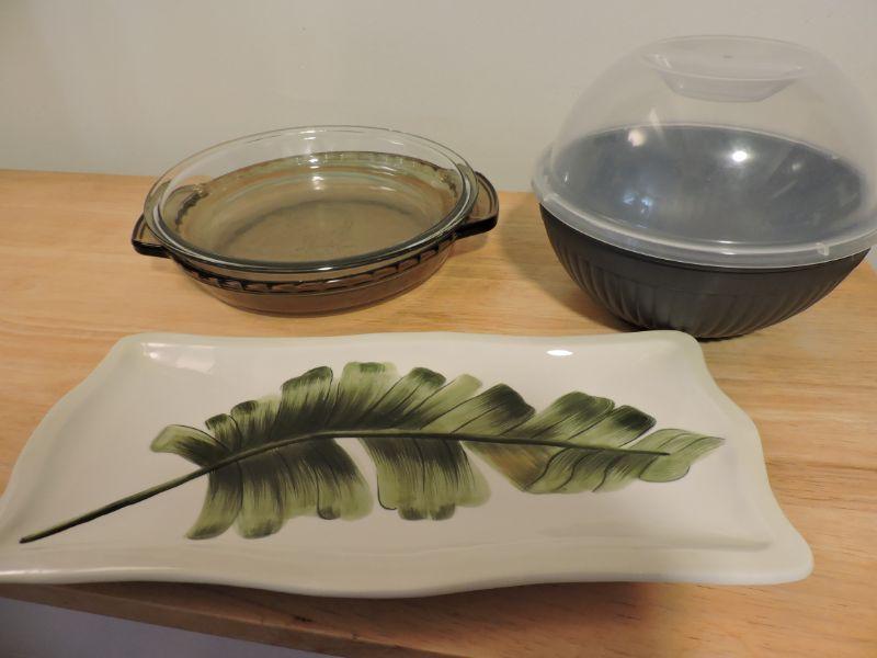 Pie plates, popcorn, and a palm platter! **Please read Terms and Conditions before placing a bid. Pick up is Thursday, August 15, 2019 from 4pm to 7pm or Sunday, August 18 from 11am-2pm in Mullica Hill. All sales are final. All sales are as is, where is. Please review all photos. Any props included in photos are not included in listing. All measurements are approximate.