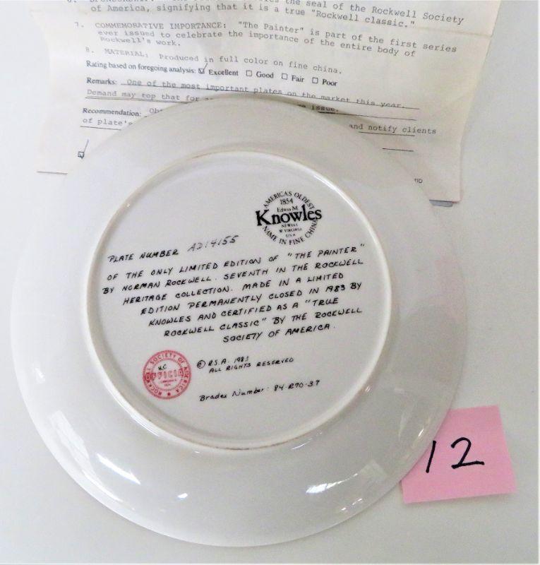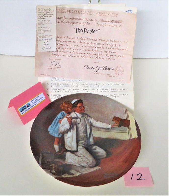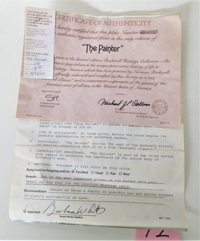 Vintage 1983 Norman Rockwell "The Painter" Plate # AD14155- 7-th Plate in the Limited Edition Rockwell Heritage Collection (1983) with Certificate Of Authenticity & Info Booklet. Measures 8.5" Diameter. Note: NO BOX. Highly Collectible. In Good Condition for its age. 2 # Shipping.