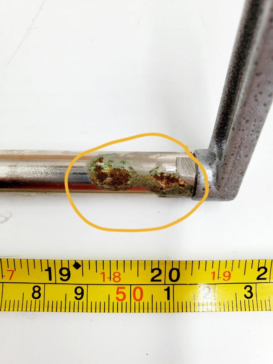 The stand seems to have a screw loose, a little wobbly and the thick slice attachment has a small area of rust/corrosion, see photos. In good overall condition