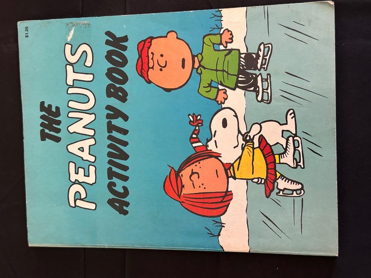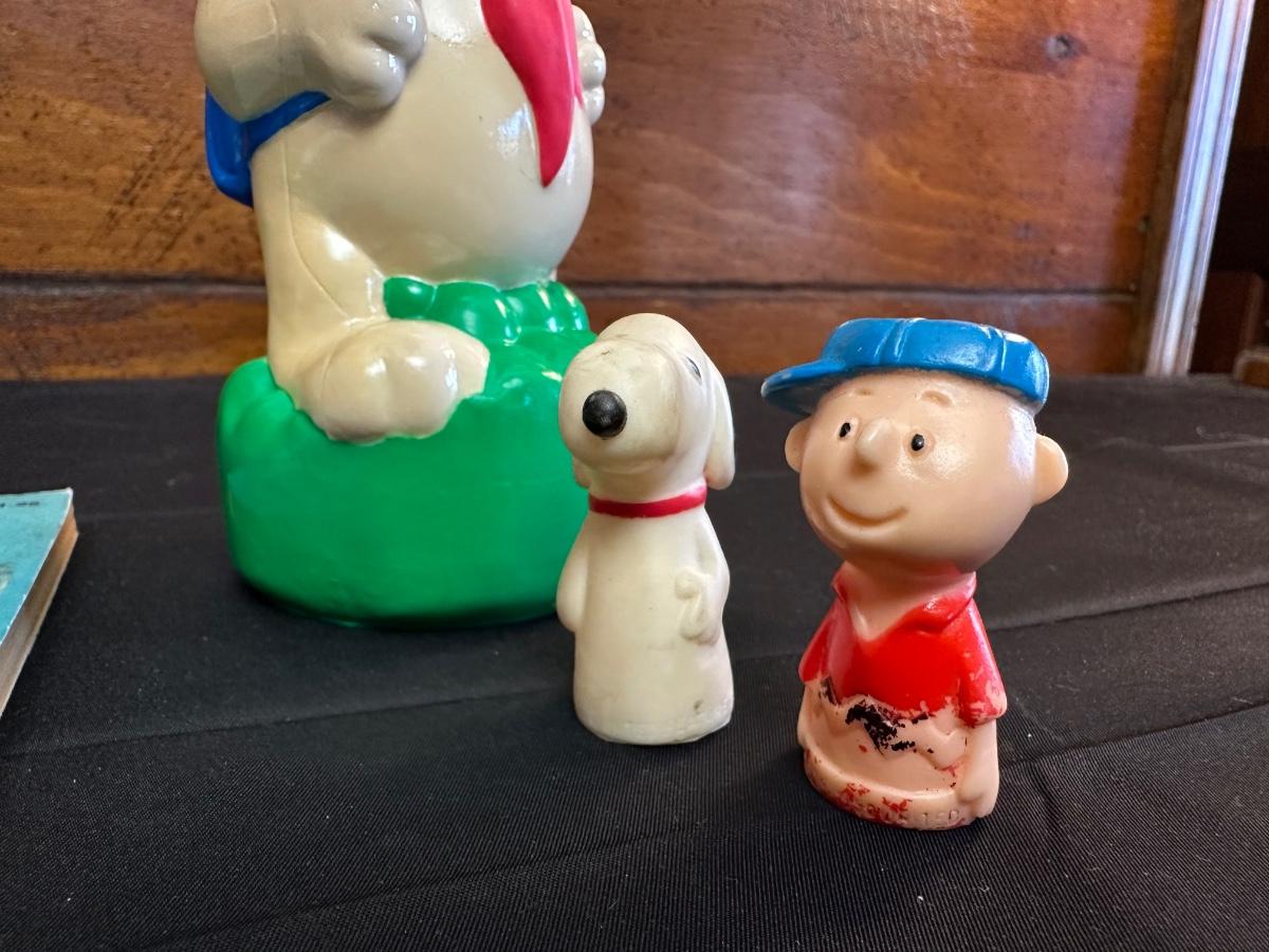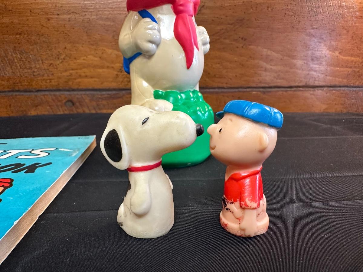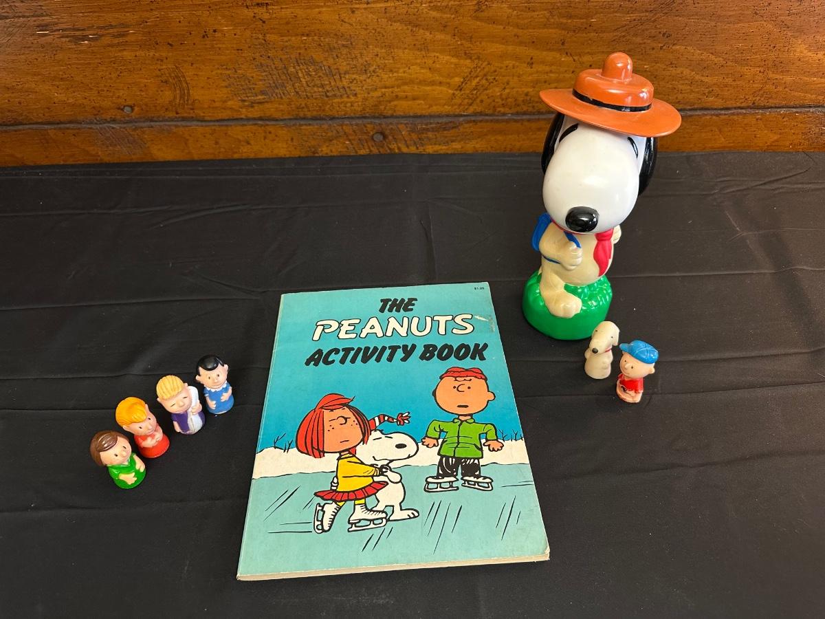 Charlie Brown, Snoopy and the Gang! Activity book is partially used. The figurines are vintage.
