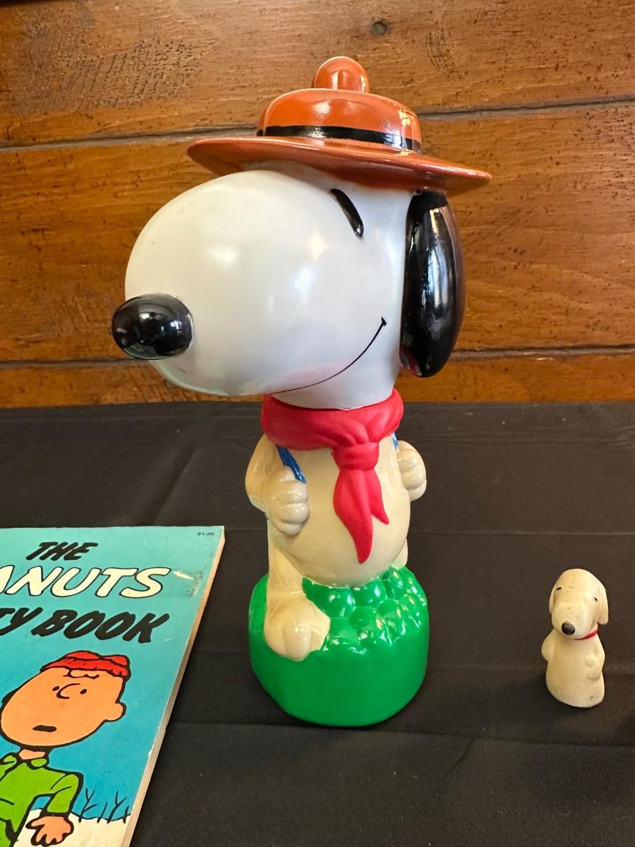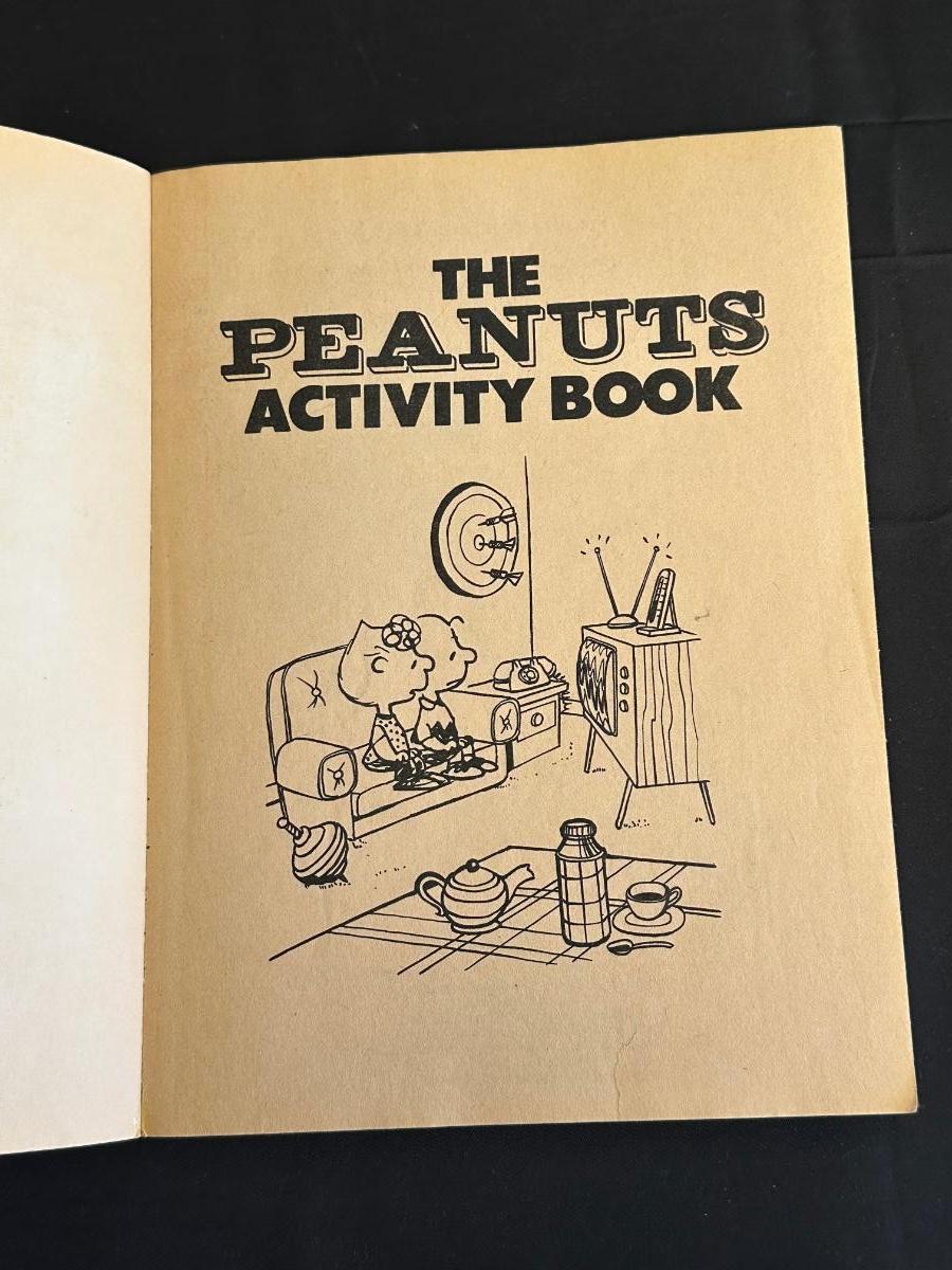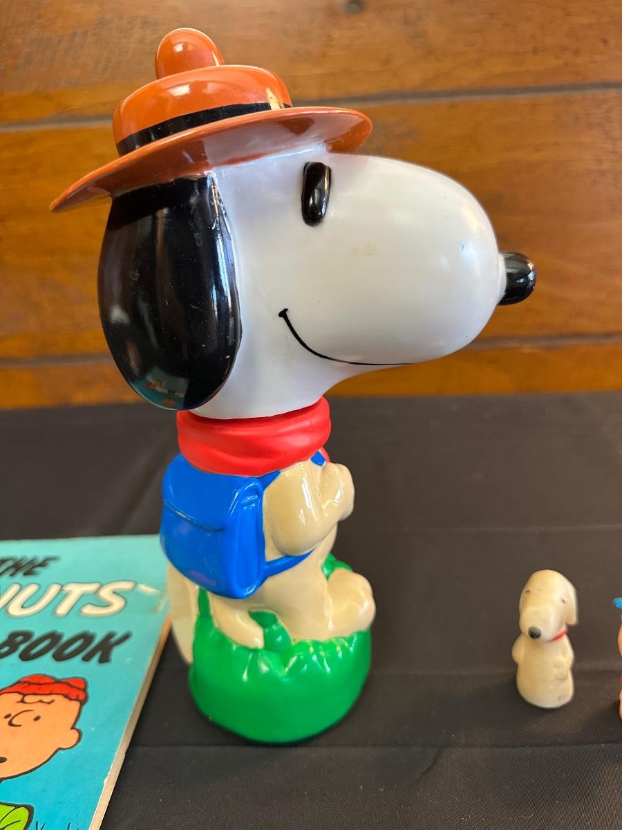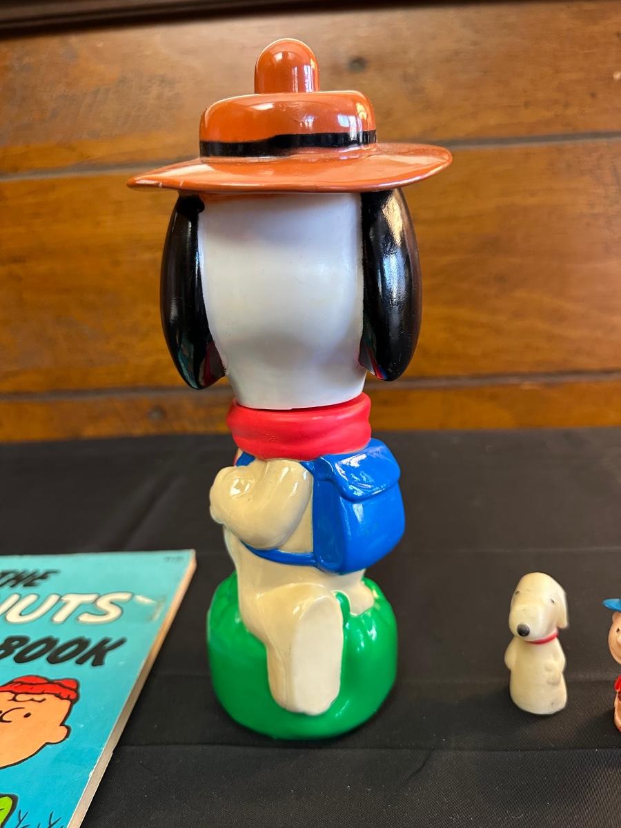 Charlie Brown, Snoopy and the Gang! Activity book is partially used. The figurines are vintage.