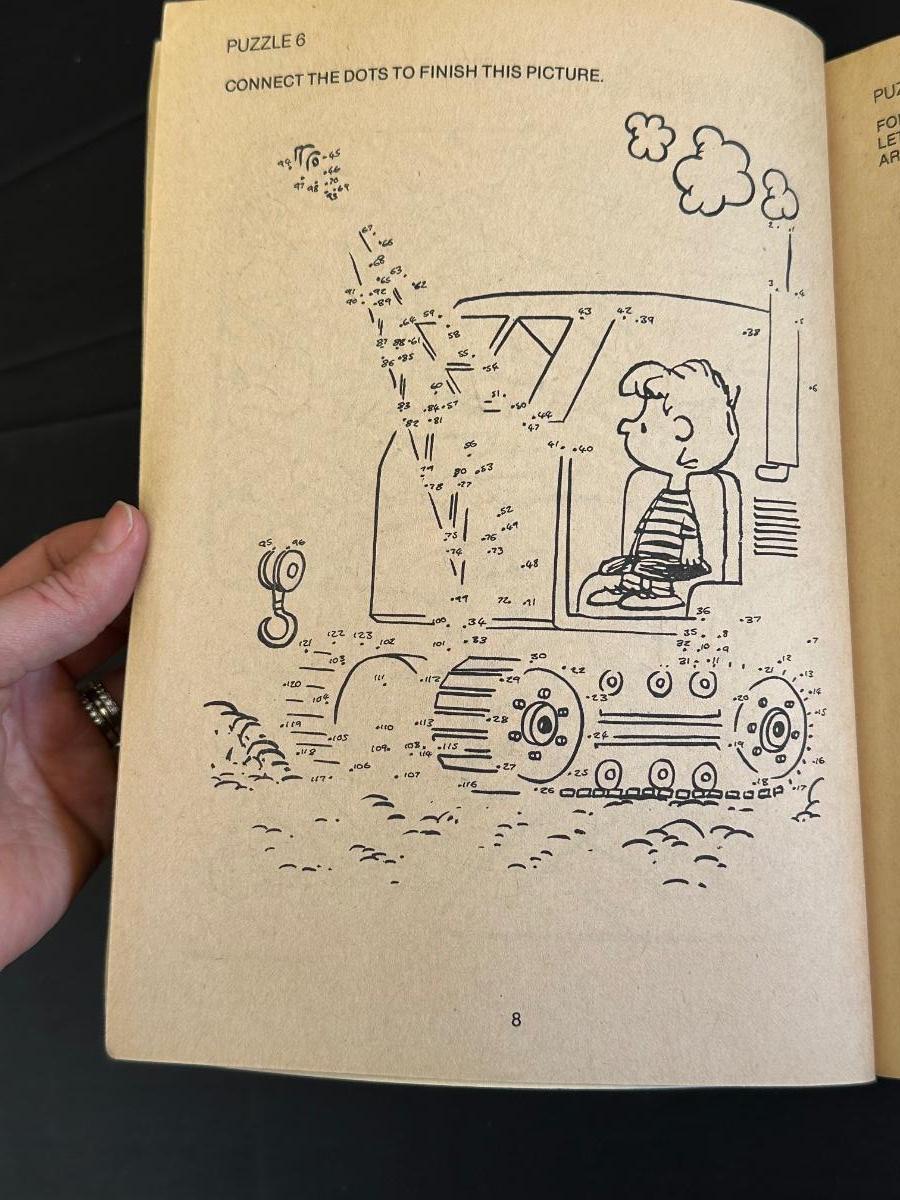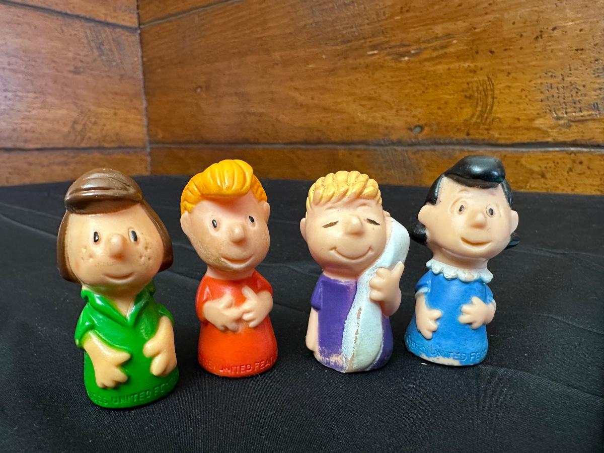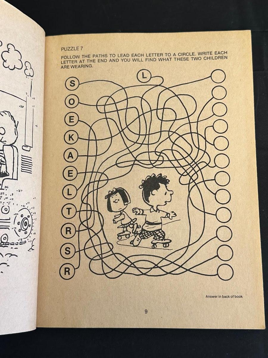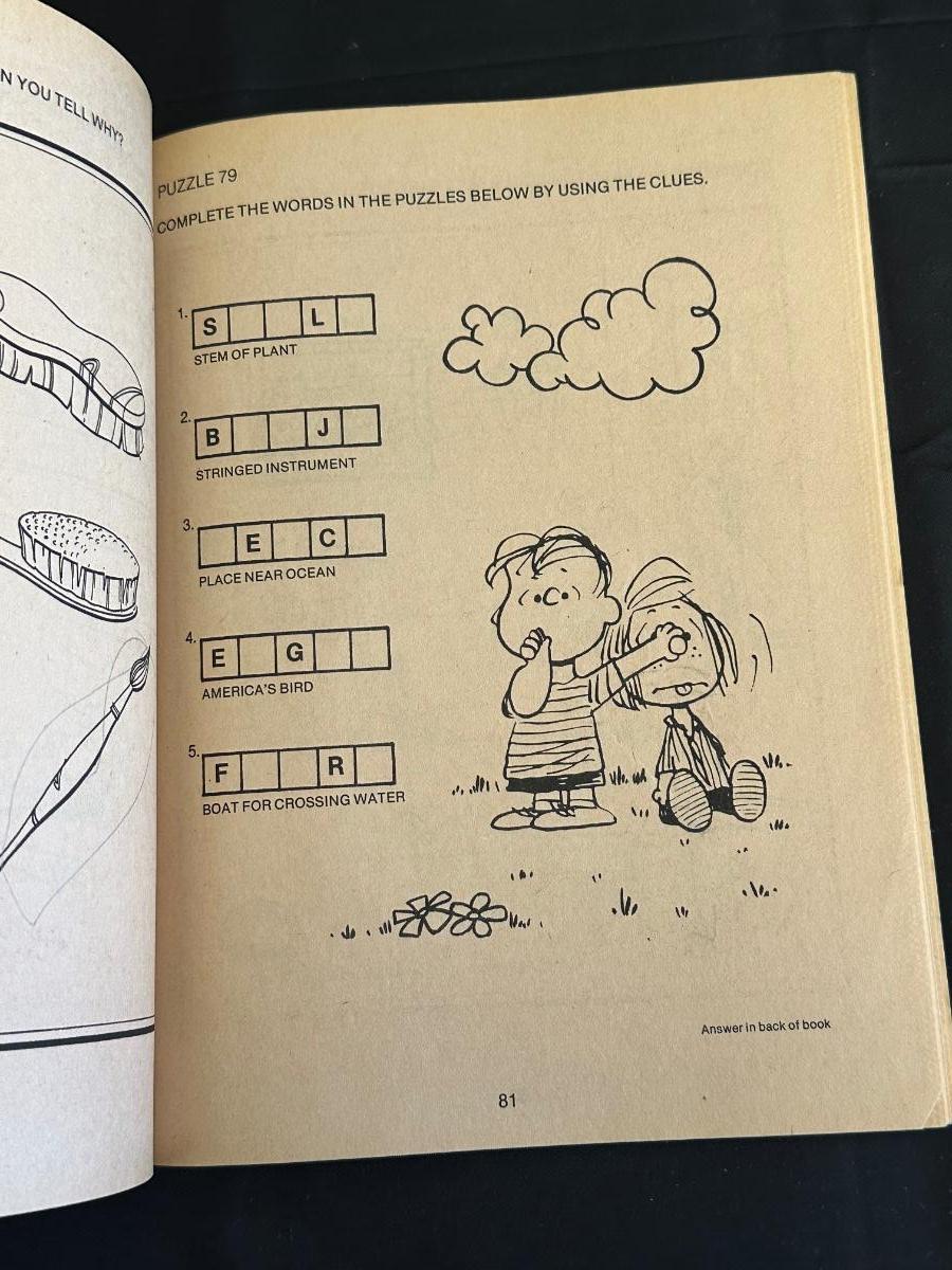 Charlie Brown, Snoopy and the Gang! Activity book is partially used. The figurines are vintage.