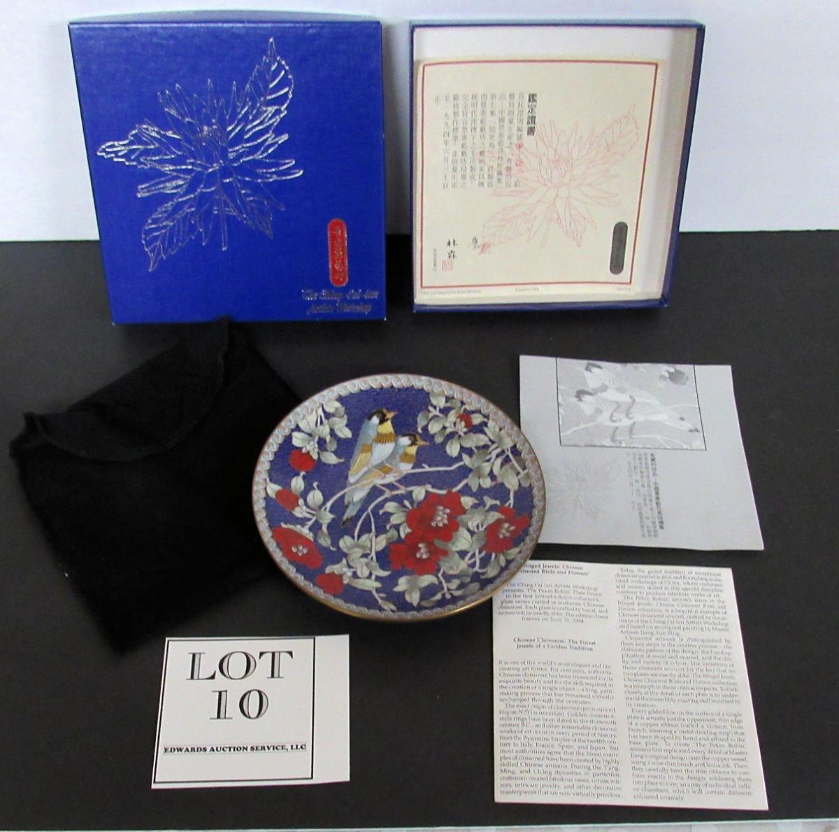 Beautiful plate, beautiful condition. 7th in series of the Winged Jewels Chinese Cloisonne Plates Series. These plates were in limited production. This one ended on 6/31/94. Comes complete in original box with package inserts. Shipping is available at shipping cost plus $5.00 handling fee on up to 8 items, $10.00 handling fee on 9 or more items.