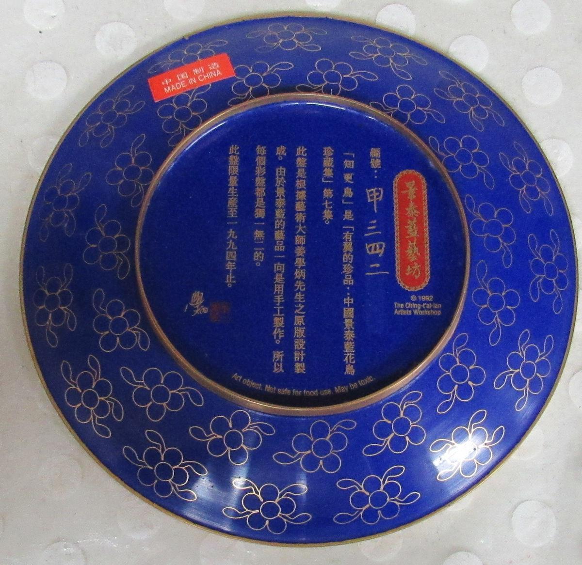 The Pekin Robin, 1992, 7th In Series, Winged Jewels Chinese Cloisonne Plates, Read description