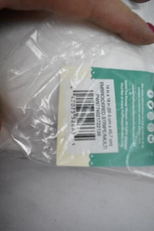 The Pioneer Woman Embroidered Stripe 14 x 18 Decorative Pillow: Cream/Orange/Blues/Greens - New