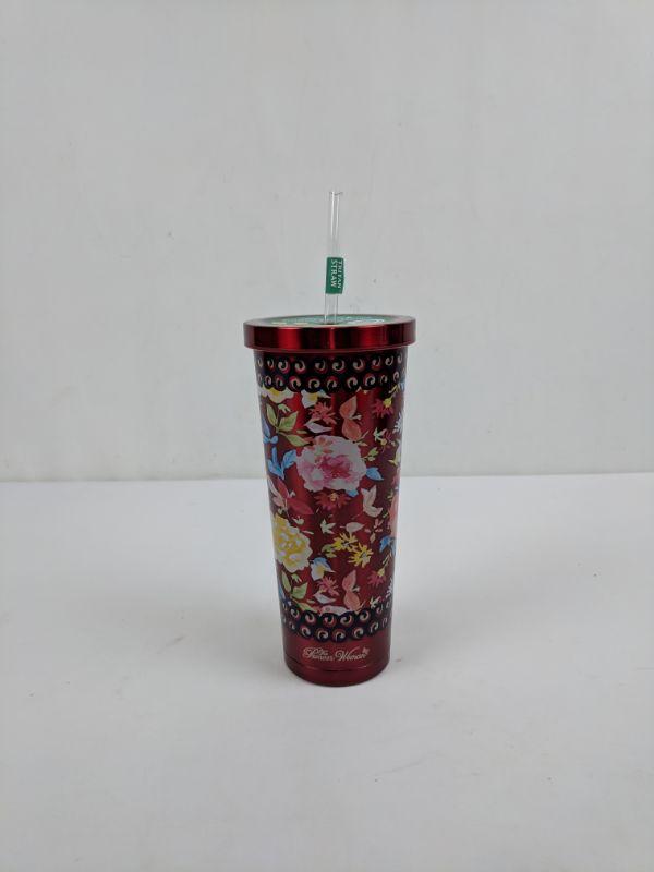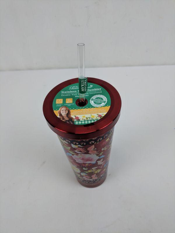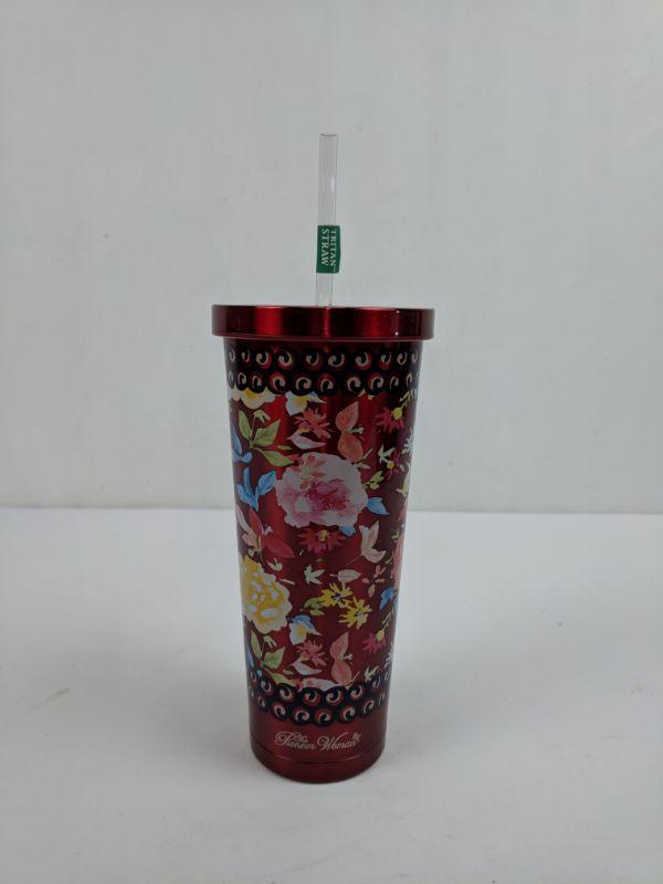 The Pioneer Woman 24oz Tumbler, Red & Floral, Tritan Straw - New
