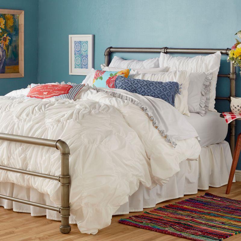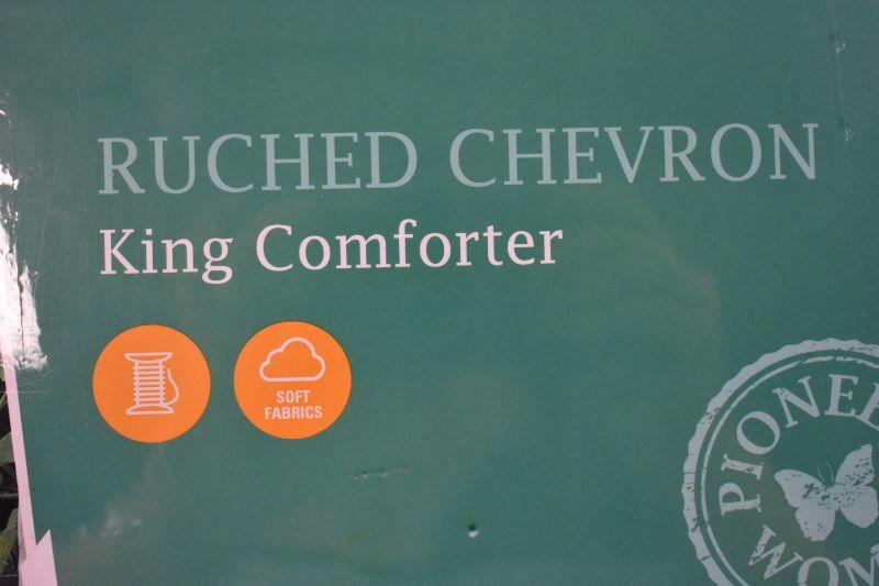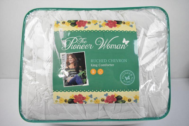 The Pioneer Woman King Comforter, Ruched Chevron, White - New