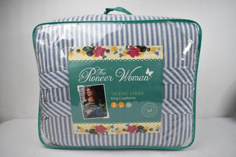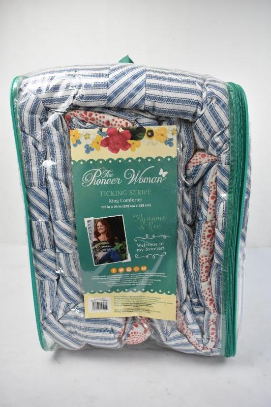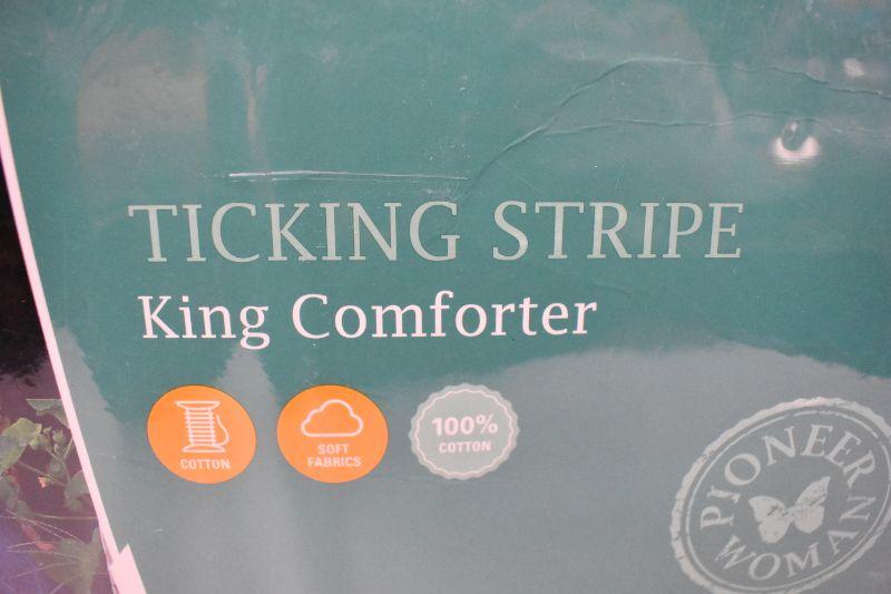 The Pioneer Woman King Size Comforter, Ticking Stripe, Chambray & Red - New