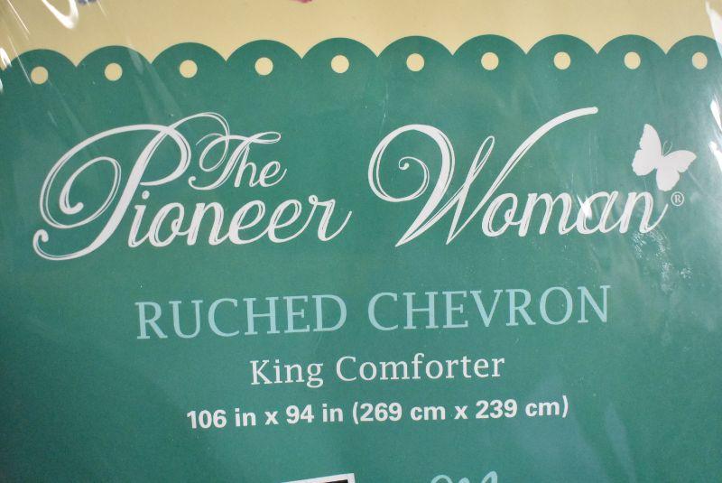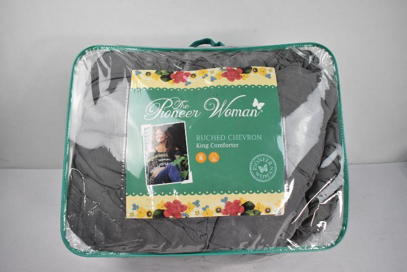 The Pioneer Woman King Size Comforter: Grey Ruched Chevron - New