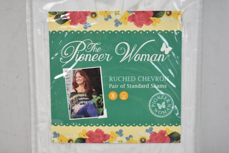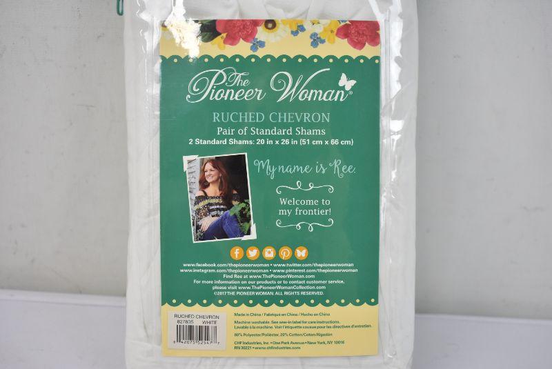 The Pioneer Woman Ruched Chevron Sham Set, Standard, White - New