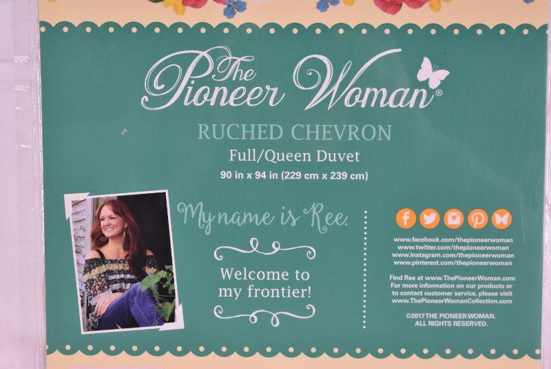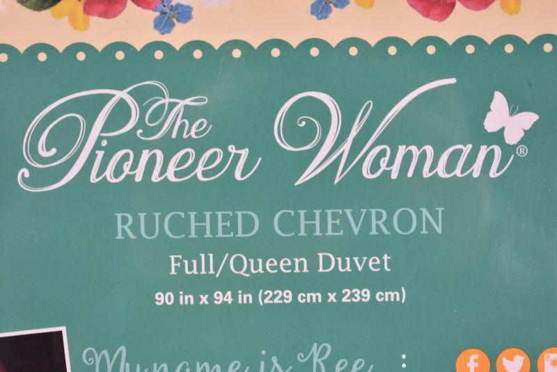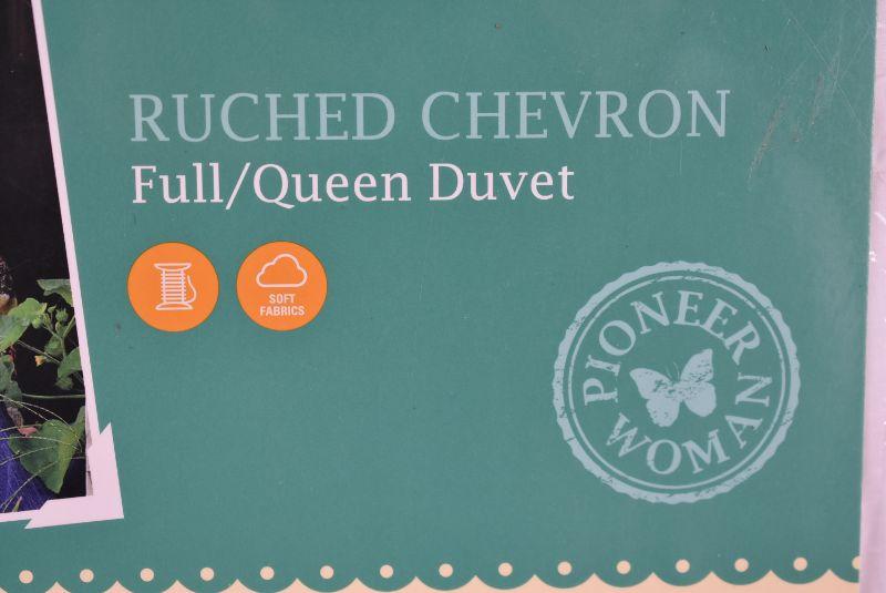 The Pioneer Woman Ruched Chevron Duvet Cover, White Full/Queen, $63 Retail - New